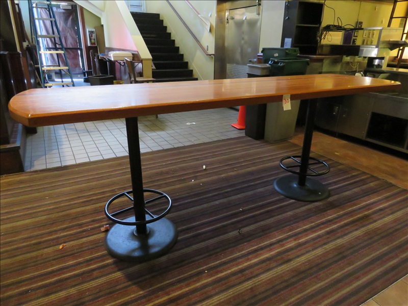 10' X 30" DOUBLE PEDESTAL SOLID WOOD BUDDY BAR TABLE W/(2) FOOT RINGS