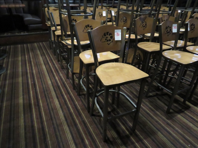 LOT, (4) WOOD BARSTOOLS W/"RAM" CUT OUT (SEATS ARE 29"H)