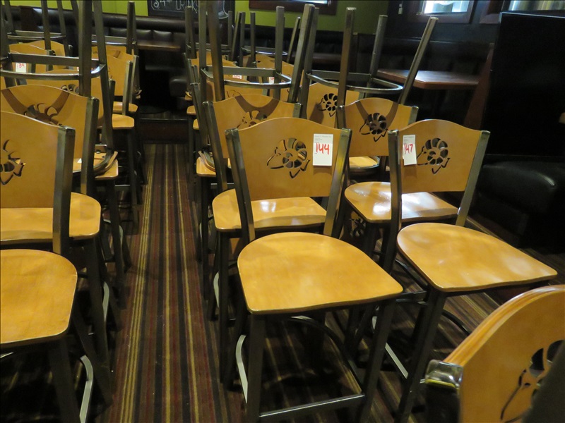 LOT, (4) WOOD BARSTOOLS W/"RAM" CUT OUT (SEATS ARE 29"H)