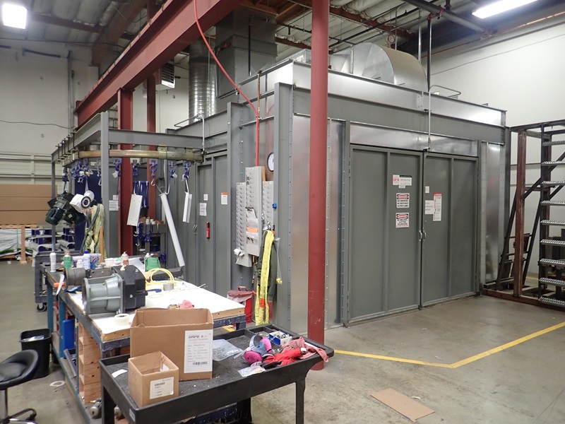 APPROX. 16'X25'X9 SPRAY BOOTH, TITAN AIR GAS FIRED MAKEUP AIR SYSTEM, 12,000 LB RAIL SYSTEM, FRONT DOOR, (2) SIDE DOORS, LIGHTS, SIEMENS SIMATIC CONTROLS, S/N: U57146-A