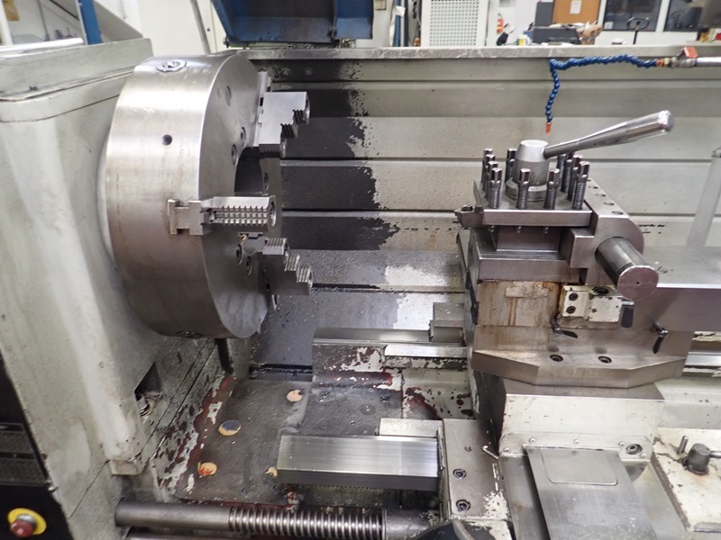 APPROX. 32"X120" ENGINE LATHE, 3-JAW CHUCK, 6" THRU SPINDLE, TOOL POST, TAILSTOCK, (2) STEADY RESTS, DRO PROS DIGITAL READOUT, S/N: 21303