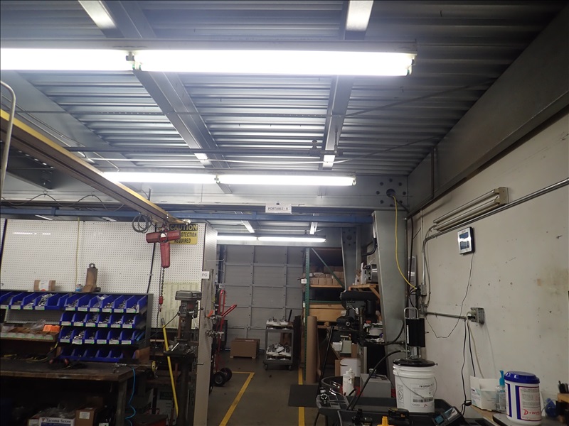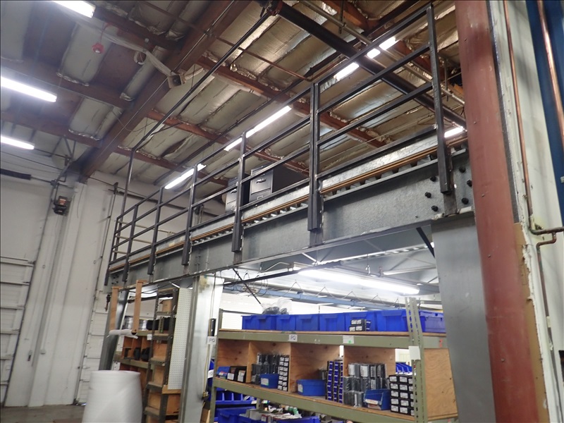 APPROX 24’X24’X10’ BOLT TOGETHER GALVANIZED MEZZANINE W/ 13’ 500LB CAP OVERHEAD CRANE, DAYTON CHAIN HOIST, LIGHTS, WOOD FLOOR, REMOVABLE RAILING