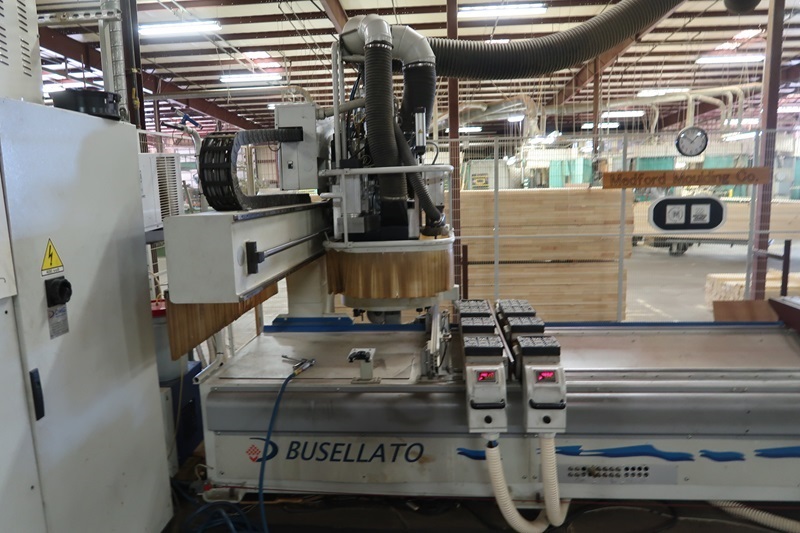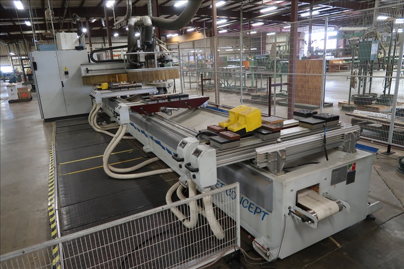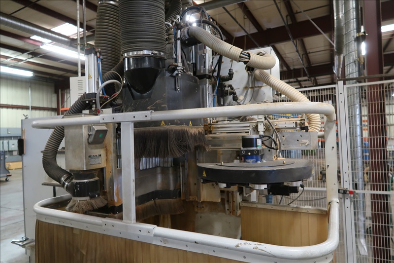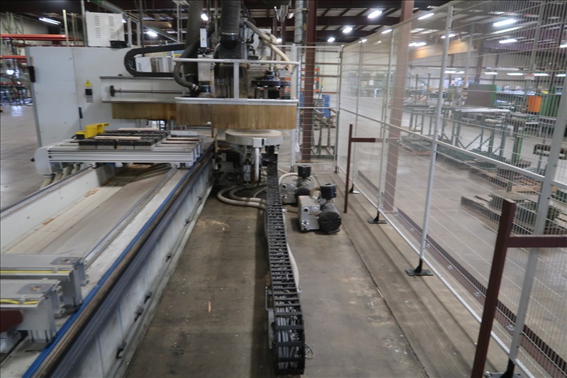 CNC MACHINING CENTER, X-AXIS = 236.2", Y-AXIS = 53", Z-AXIS = 3.94", MAX. PANEL THICKNESS = 7.1", 10 & 15-TOOL CAROUSELS, 12 KW X 1,000-18,000 RPM ELECTRO SPINDLE, 7.5 KW X 18,000 KW ELECTRO SPINDLE, DUAL AREA JIG LOCKING TABLE W/(8) IMC PANEL SUPPORTS W/SCALES, (2) BUSCH VACUUM PUMPS, AUTO CENTRAL LUBE SYSTEM