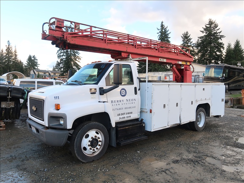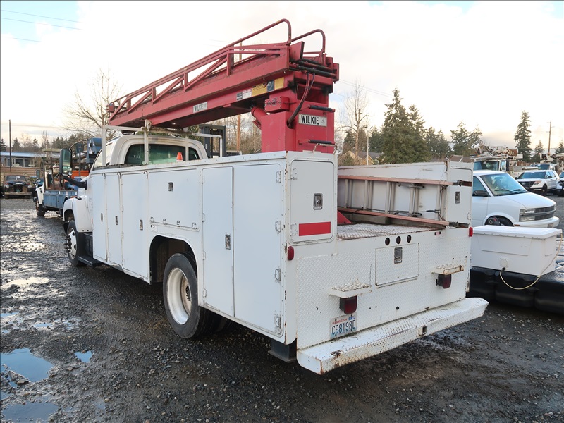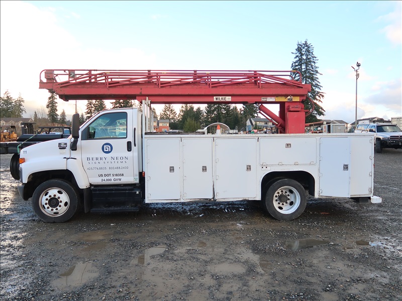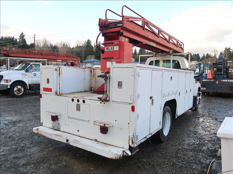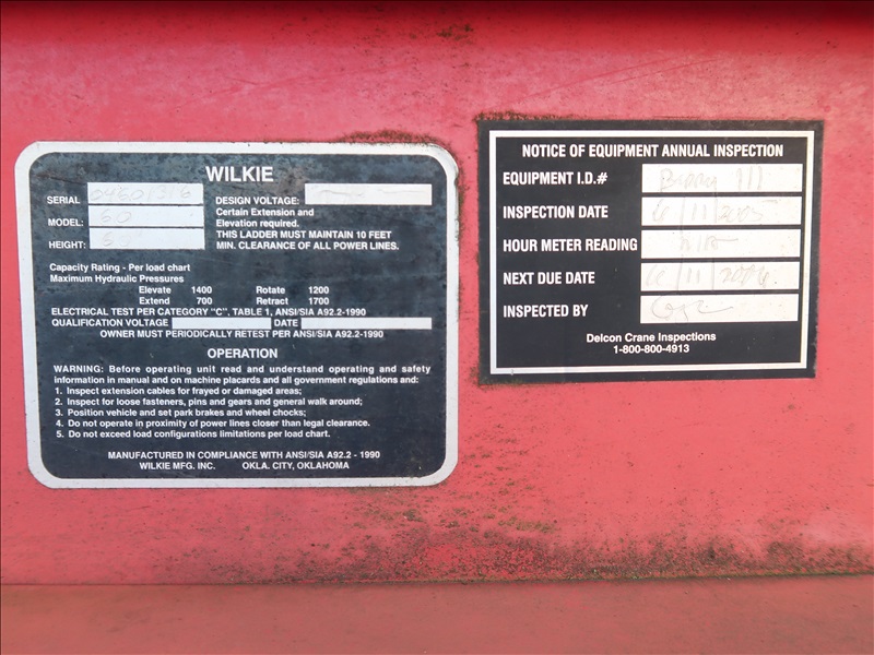LADDER TRUCK, WILKIE 60' LADDER BOOM, OUTRIGGERS, CAT C7, 6 SPD (CHECK ENGINE LIGHT IS ON)