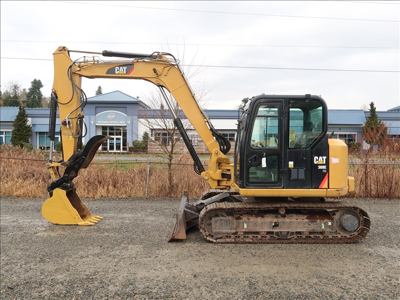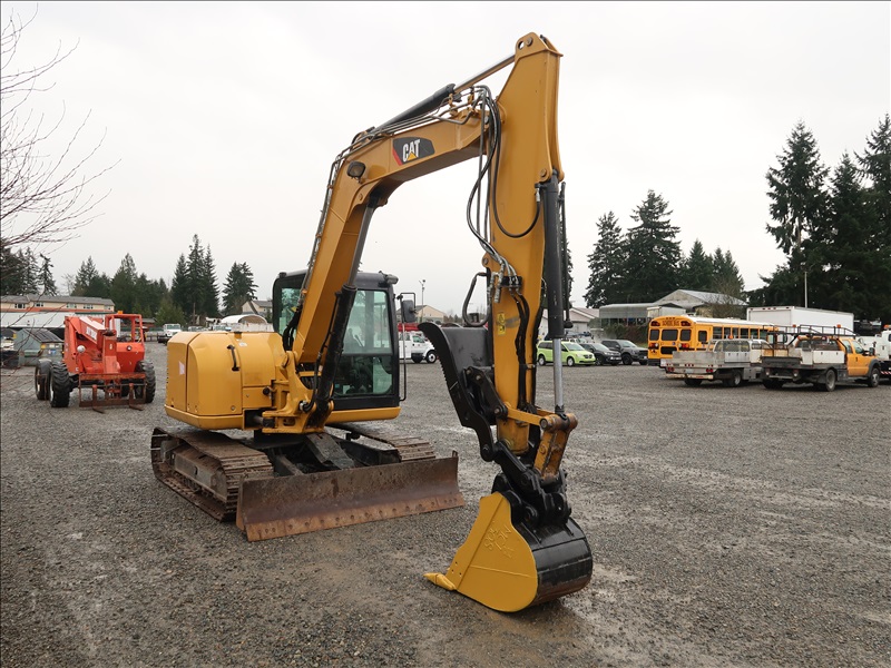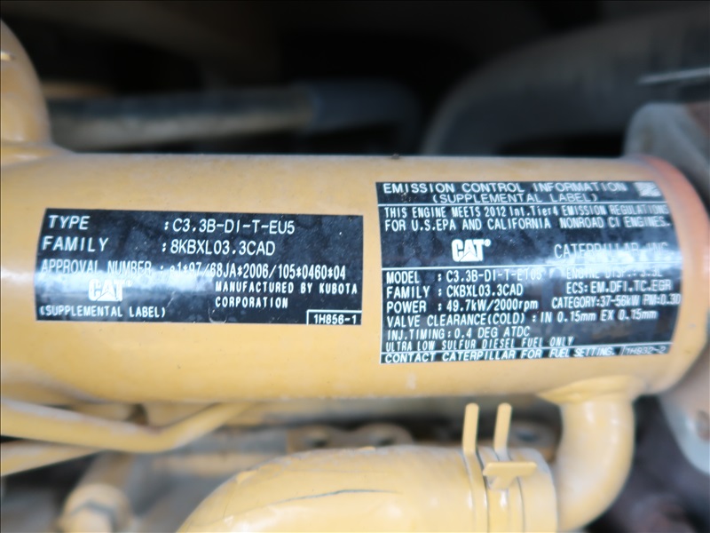 HYDRAULIC EXCAVATOR, 65 HP C3.3B, SWING BOOM, 7'3" STICK, HYD THUMB, AUX HYD, PIN GRABBER, 22" BUCKET, BLADE, RUBBER INSERTS, A/C CAB