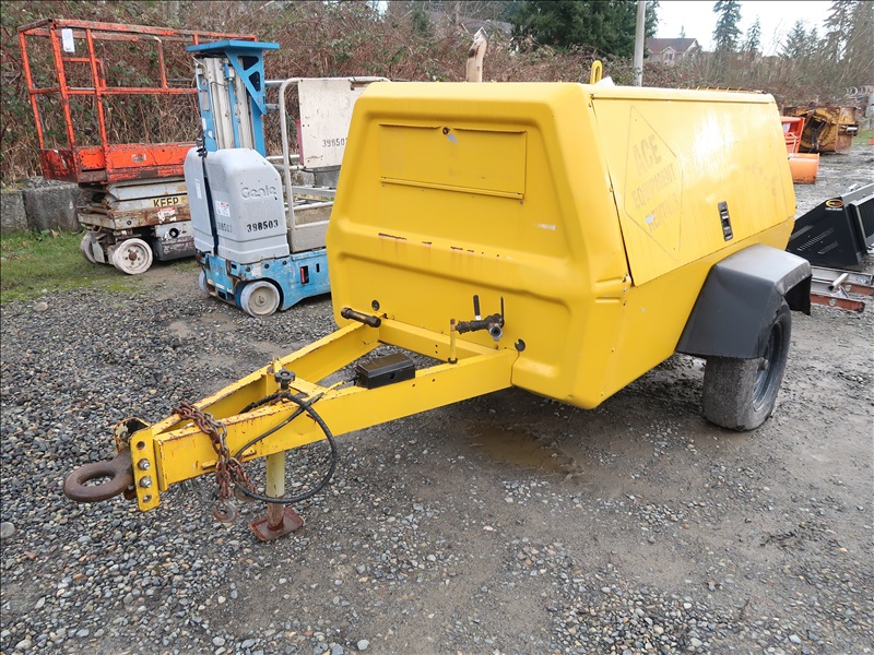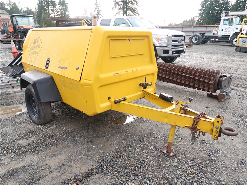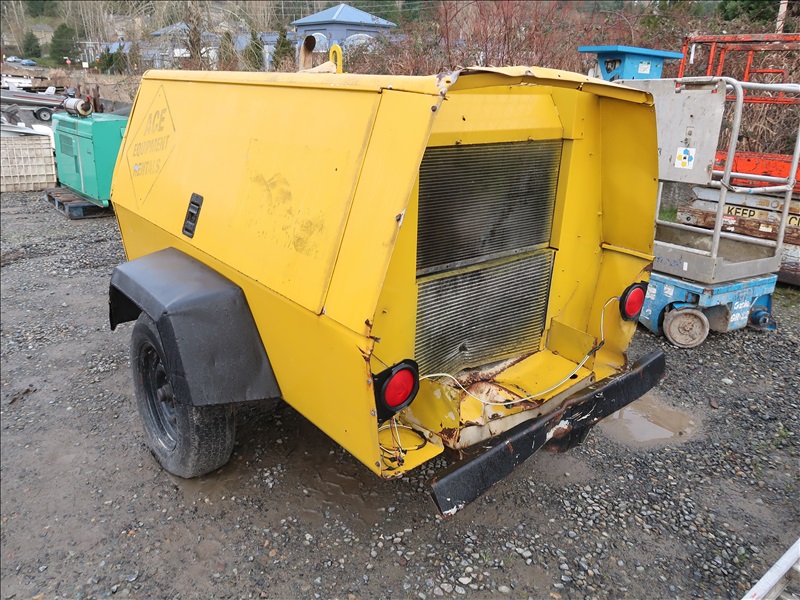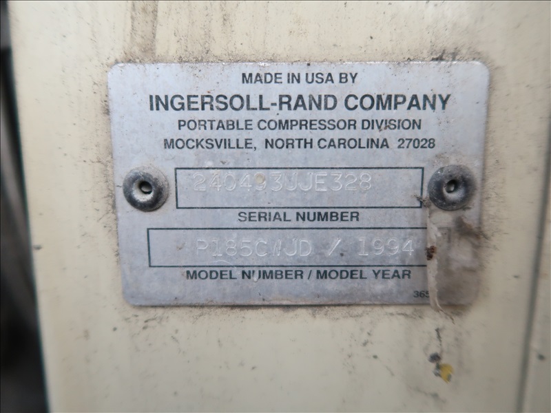 S/A, 185 CFM, 100 PSI TRAILER MOUNTED AIR COMPRESSOR, JOHN DEERE 4039D, 4 CYL DIESEL