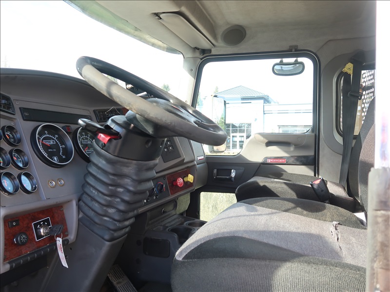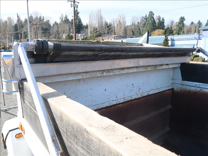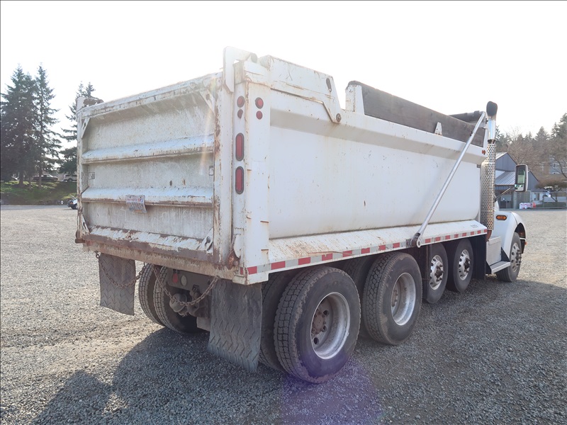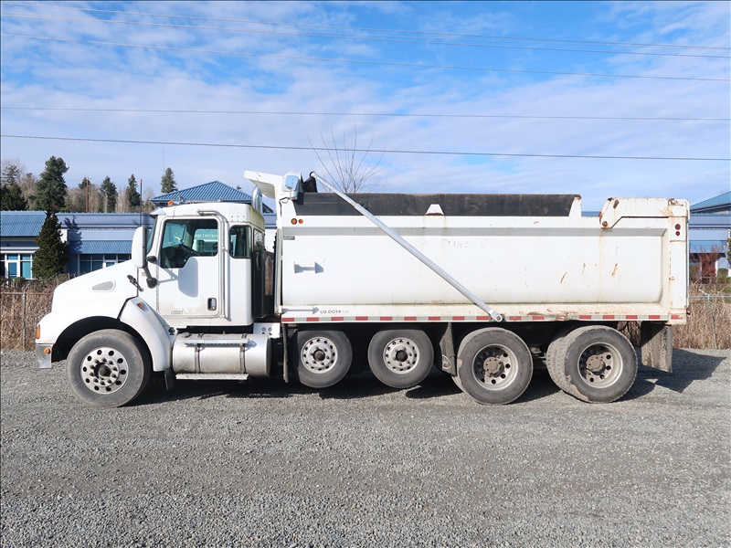 DUMP TRUCK, 16' STEEL BOX, HIGH LIFTGATE, TARP SYSTEM, 330 HP PACCAR PX-8, AUTO, CHALMERS SUSPENSION, 221" W/B, 14,600 LB FRONT, 40,000 LB REARS, 6.17 RATIO (2) DROP AXLES