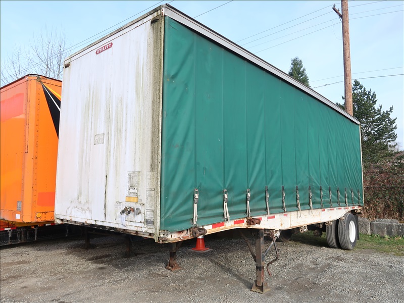 S/A, 27', 37,000 LB GVWR CURTAIN SIDE VAN TRAILER, ROLL UP REAR DOOR, SPRING SUSPENSION, A/B, 295/75-R22.5