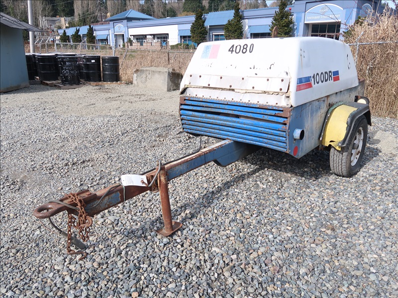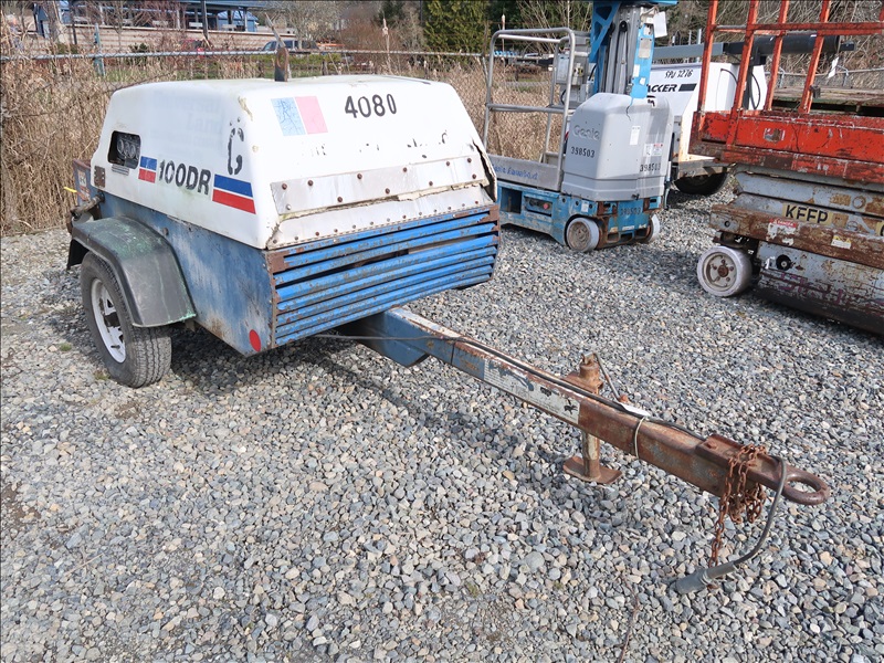 S/A, 100 CFM TRAILER MOUNTED AIR COMPRESSOR, KUBOTA 4 CYL DIESEL, (RUNS & OPERATES)