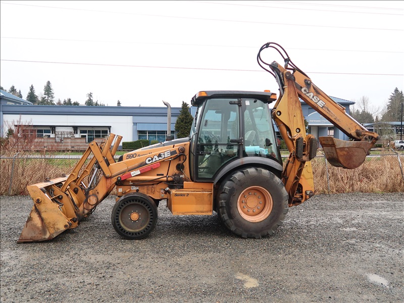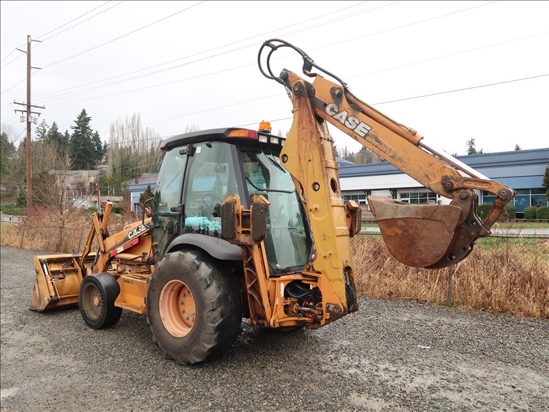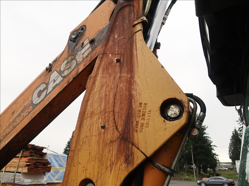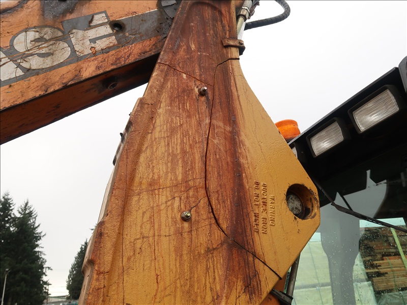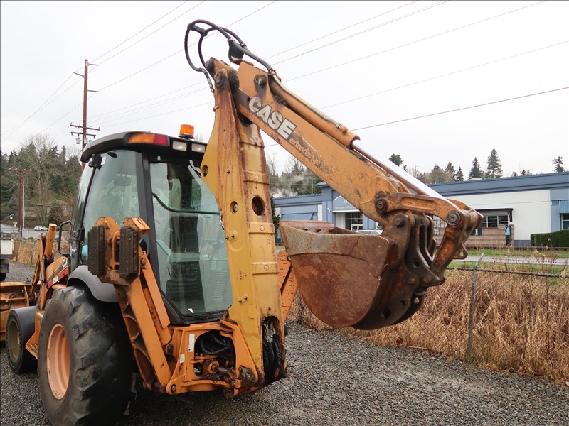 BACKHOE, 99 HP 445T/M2, 4F/4R SYNCHROMESH, 4-IN-1 LOADER BUCKET, EXTENDAHOE, AUX HYD, QC 23" BUCKET, A/C CAB (COUNTY DISCLOSURE: BOOM IS CRACKED)