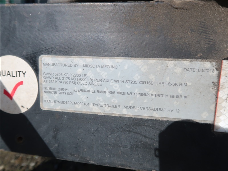 T/A, 12' 12,800 LB GVWR, 12V/HYDRAULIC DUMP TRAILER, SWING DOORS, E/B, 235/80-R16