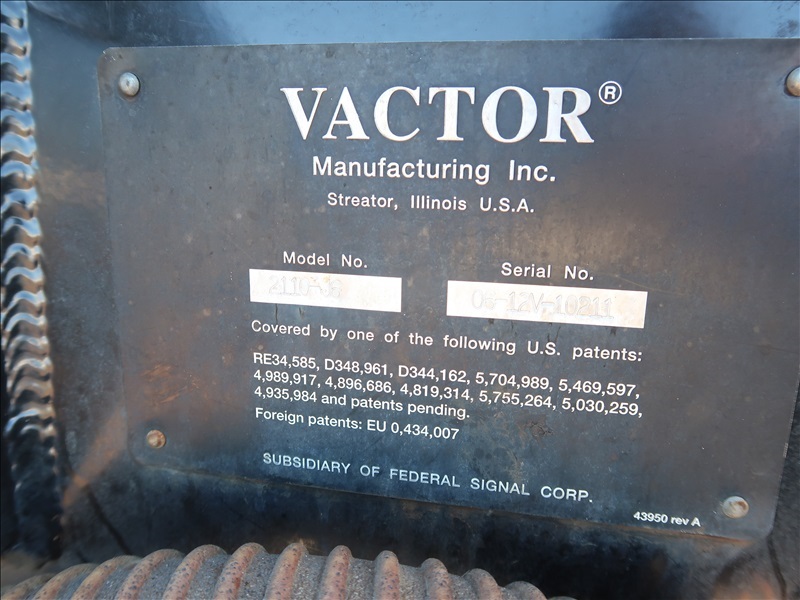 T/A, HYDRO/VAC TRUCK, VACTOR 2,100 SERIES, 2110-J6, JD POWERTECH 6.8 AUX DIESEL, CUMMINS ISM, AUTO