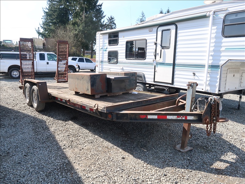 T/A, 20', 15,300 LB GVWR FLAT DECK TRAILER, RAMPS, E/B, 245/75-R16