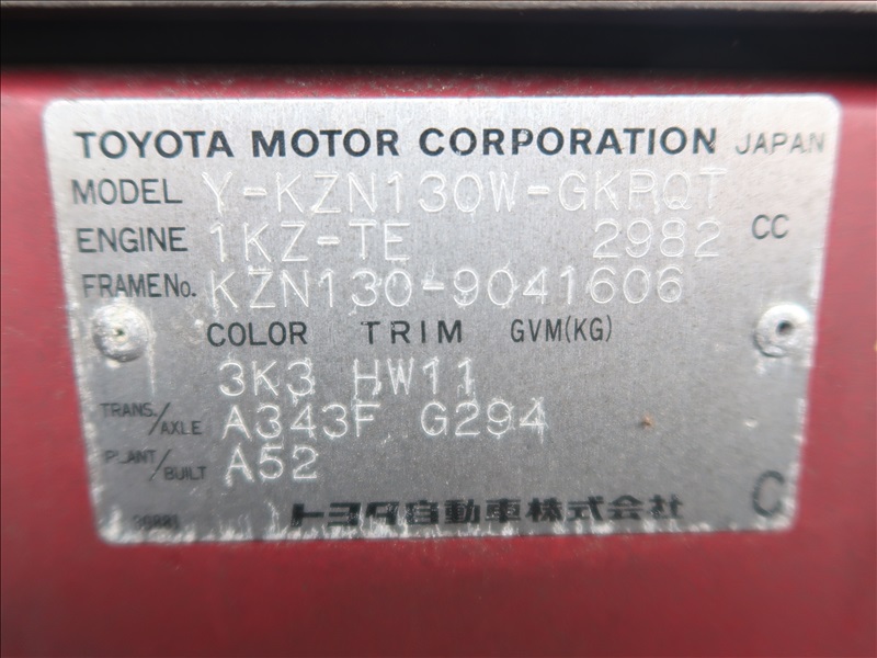 SUV, 4WD, 1KZ - TE TURBO DIESEL, AUTO, A/C, TILT, P/WDW, P/SEAT, P/LOCK, SUNROOF, RIGHT HAND DRIVE, ODO READS 182,747 KILOMETERS CONVERTS TO 113,553 MILES