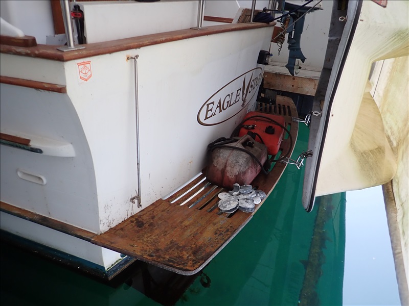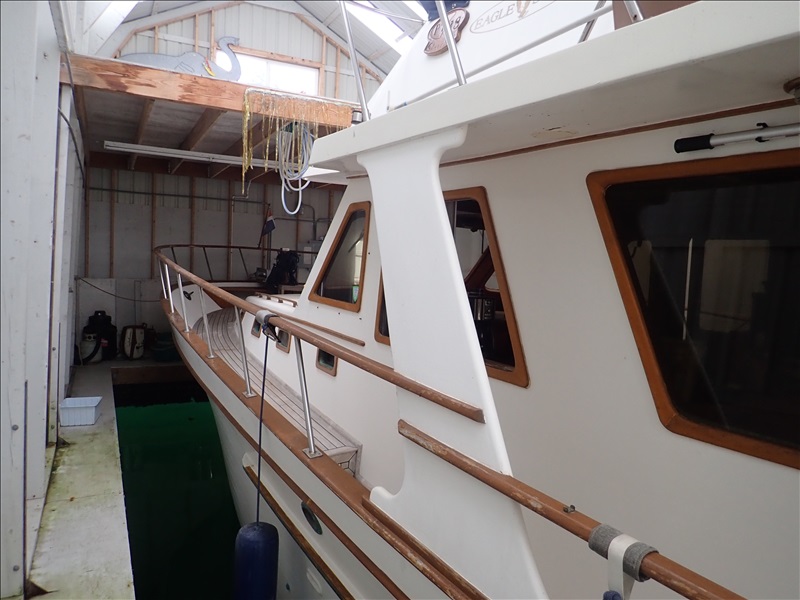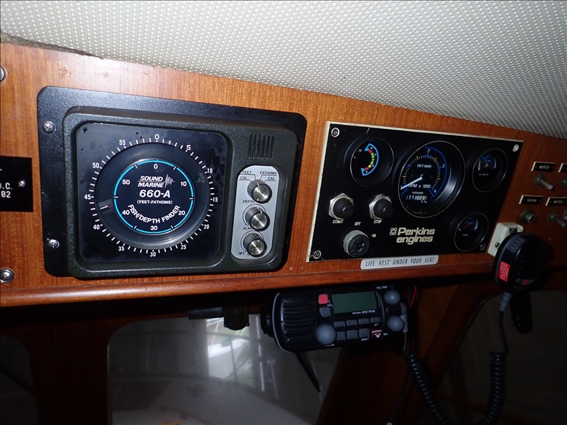 38' TRAWLER YACHT, FIBERGLASS HULL, PERKINS 6 CYL DIESEL, LUGGER 3 CYL MARINE GENERATOR, BOW THRUSTER, UPPER & LOWER HELM STATIONS, MAXWELL WIDNLESS WINCH W/PLOW ANCHOR ON CHAIN, TEAK DECK, STARBOARD BOARDING DOOR, TRANSOM DOOR, TEAK INTERIOR W/(2) CHAIRS