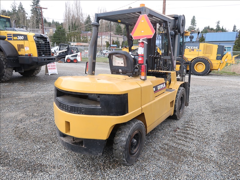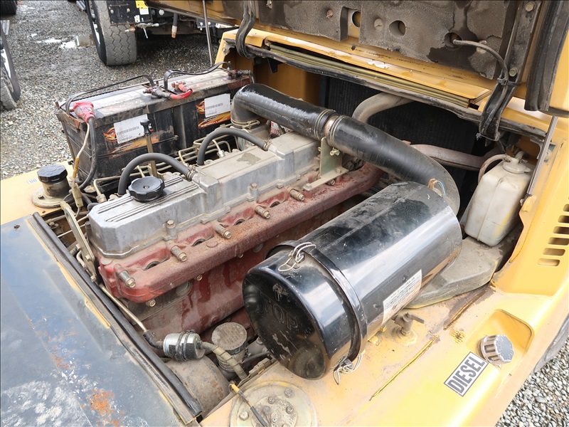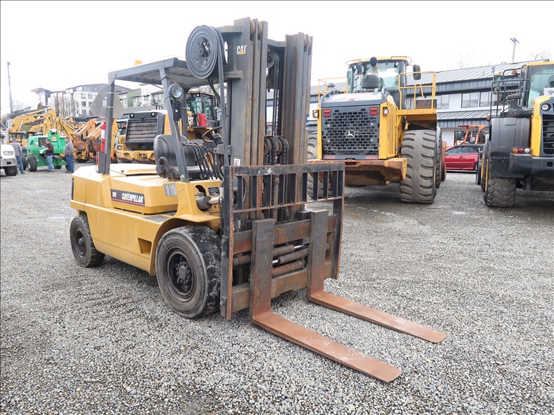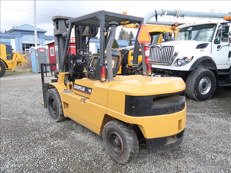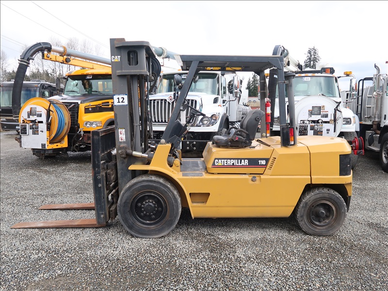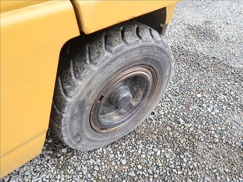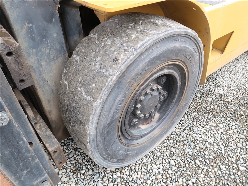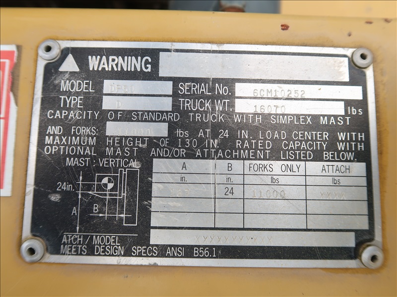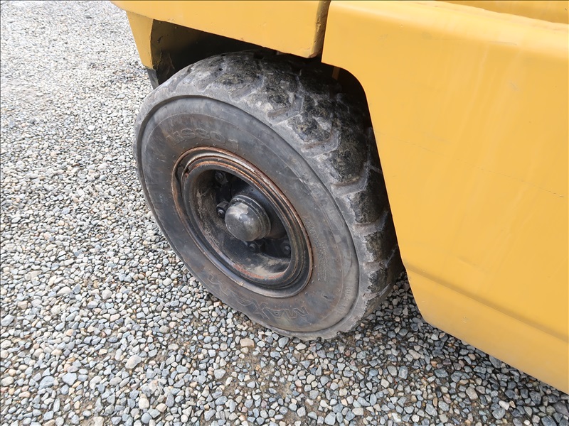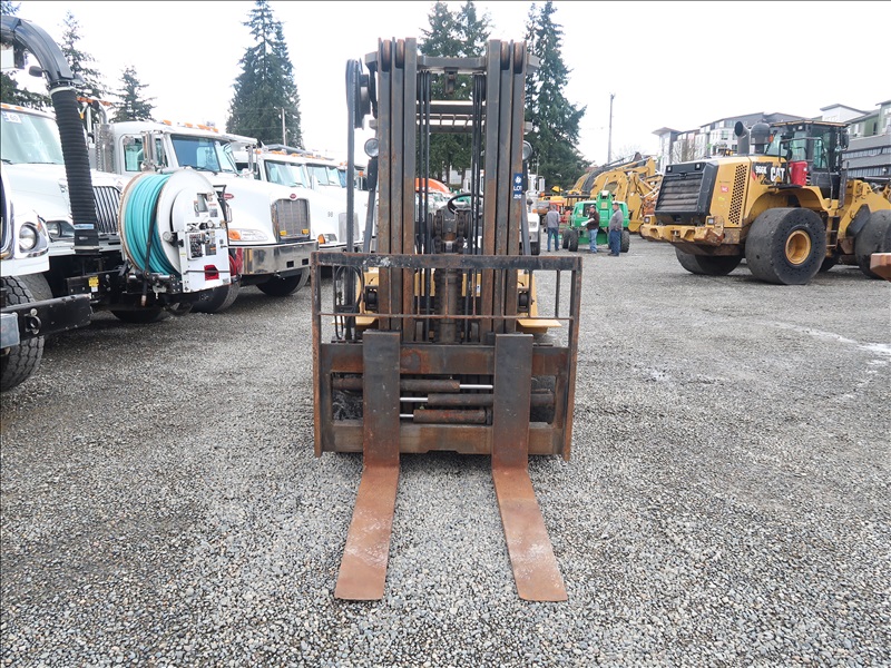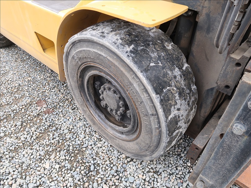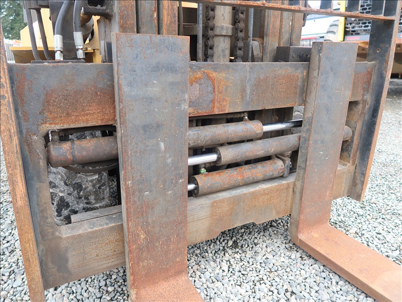 11,000 LB PNEUMATIC TIRE FORKLIFT, 187" FORKLIFT HEIGHT, 3-STAGE MAST, SIDE SHIFT, FORK POSITIONERS, LUMBER FORKS, 6 CYL DIESEL