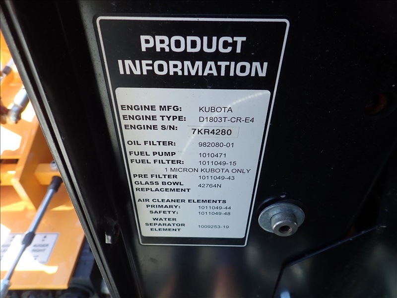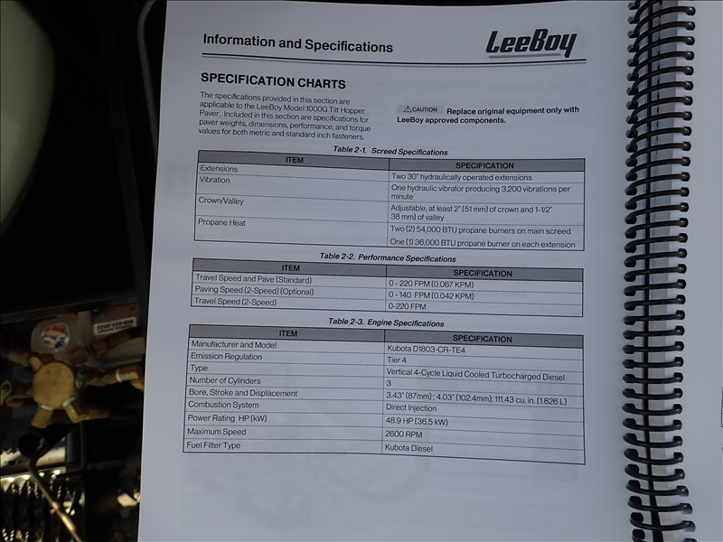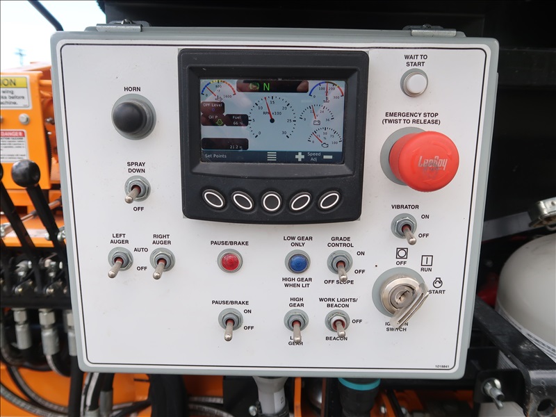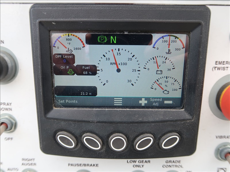 CRAWLER ASPHALT PAVER, 48.9 HP KUBOTA D1803T-CR-E4 TIER 4, DIGITAL DISPLAY, 8' - 13' HYD EXTENDABLE SCREED, HYD VIBRATOR, 3,200 VIBRATIONS PER MINUTE, 2" CROWN, 1.5" VALLEY, HIGH/LOW TRAVEL SPEED, GRADE CONTROL, 5-TON HOPPER CAPACITY, (2) 54,000 BTU MAIN SCREED PROPANE BURNERS, (1) 36,000 BTU EXT PROPANE BURNER