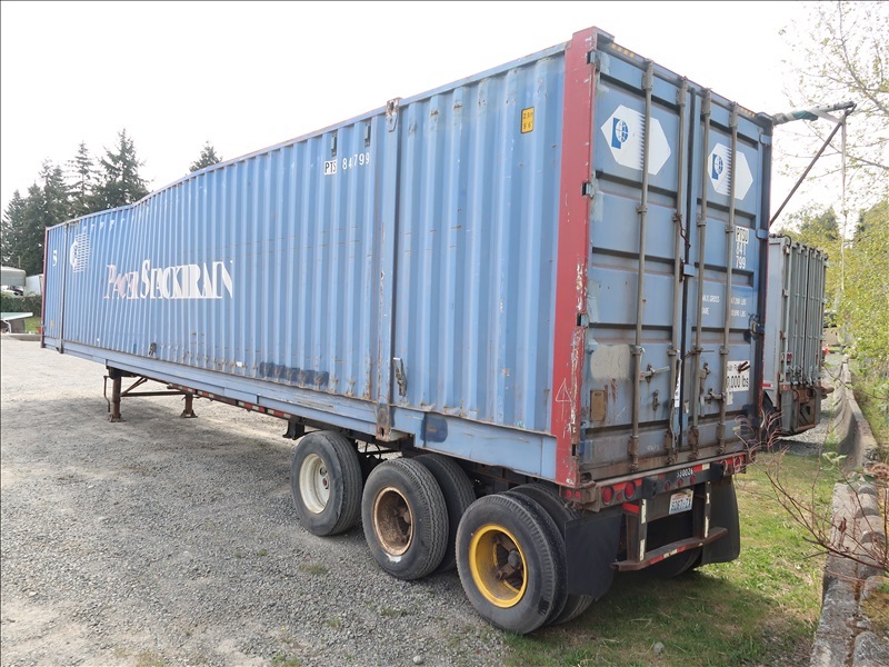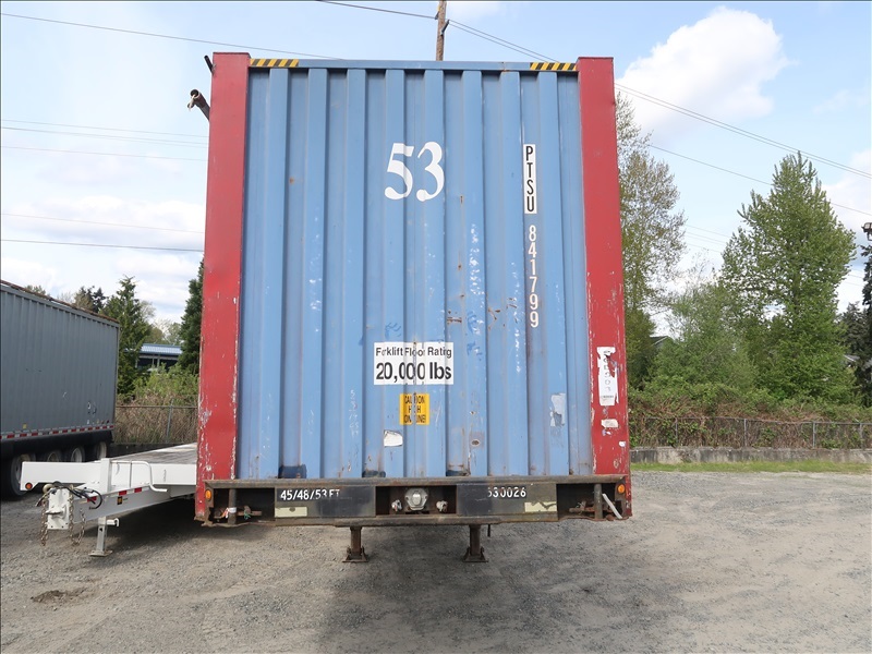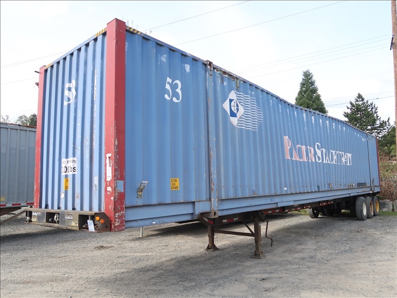 TRI/A, 45'/48'/53' EXTENDABLE CONTAINER CHASSIS, SPRING SUSPENSION, A/B W/53' OPEN TOP CONTAINER & REAR SWING DOORS