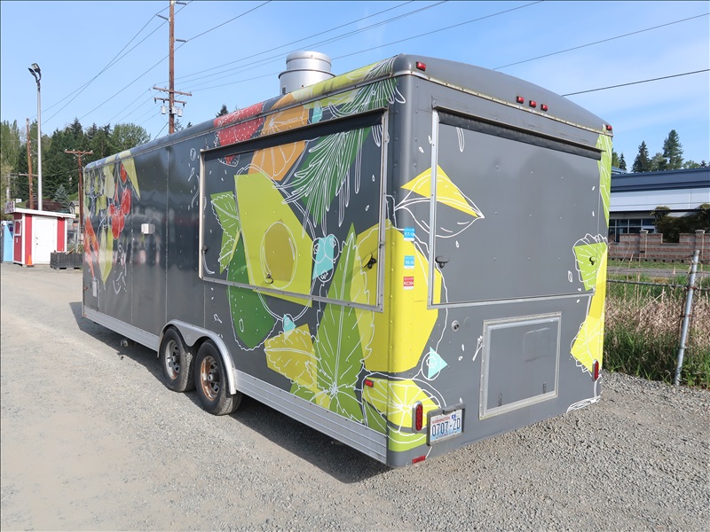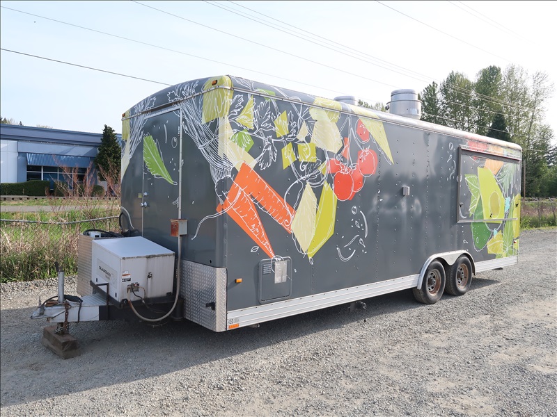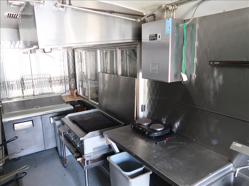 T/A 24' X 8' COMPLETE CONCESSIONS TRAILER, GRIDDLE/CHARBROILER/RANGE, 2-COMPARTMENT DEEP FRYER, 3-COMPARTMENT FOOD WARMER, REFRIGERATOR/FREEZER, REFRIGERATED PREP TABLE, 4-COMPARTMENT SINK, HAND WASH STATION, 4-GAL WATER HEATER, FIRE SUPPRESSION SYSTEM, 7,500 WATT LPG GENERATOR, STABILIZER JACKS, ELECT BRAKES, 225/75R15