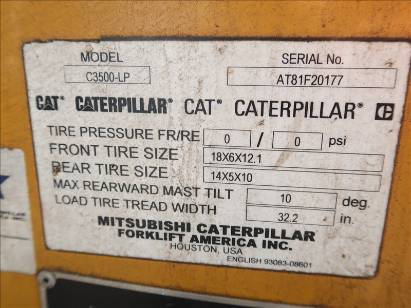 3,500 LB HRT FORKLIFT, 121" FORK HEIGHT, 2-STAGE MAST, 4 CYL LPG, CANOPY