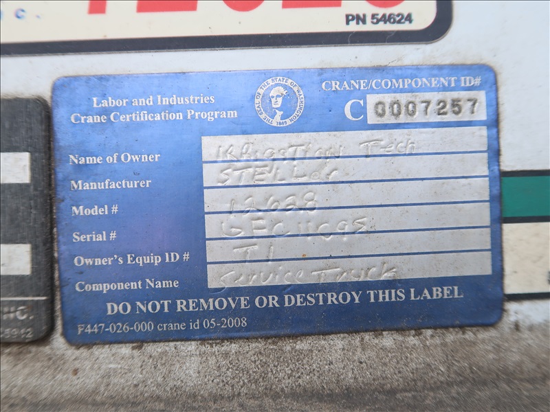 MECHANIC TRUCK, PAC CAR PX-8, AUTO, STELLAR 12628 CRANE, OUTRIGGERS, AMERICAN EAGLE AIR COMPRESSOR