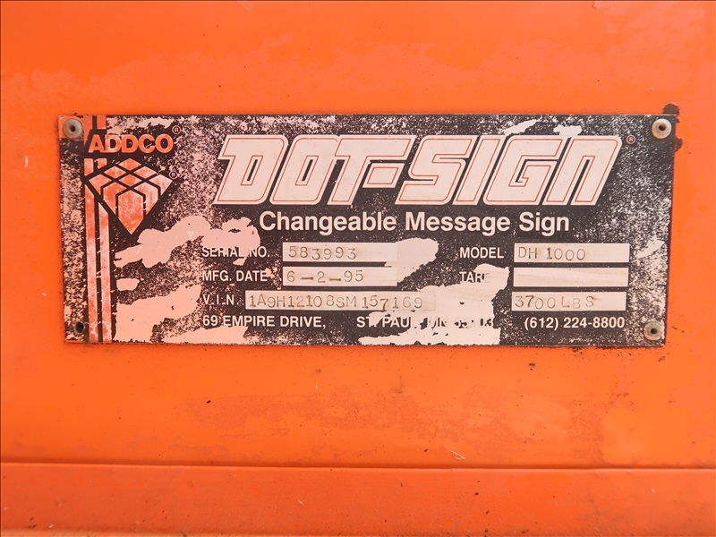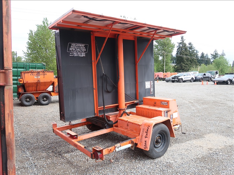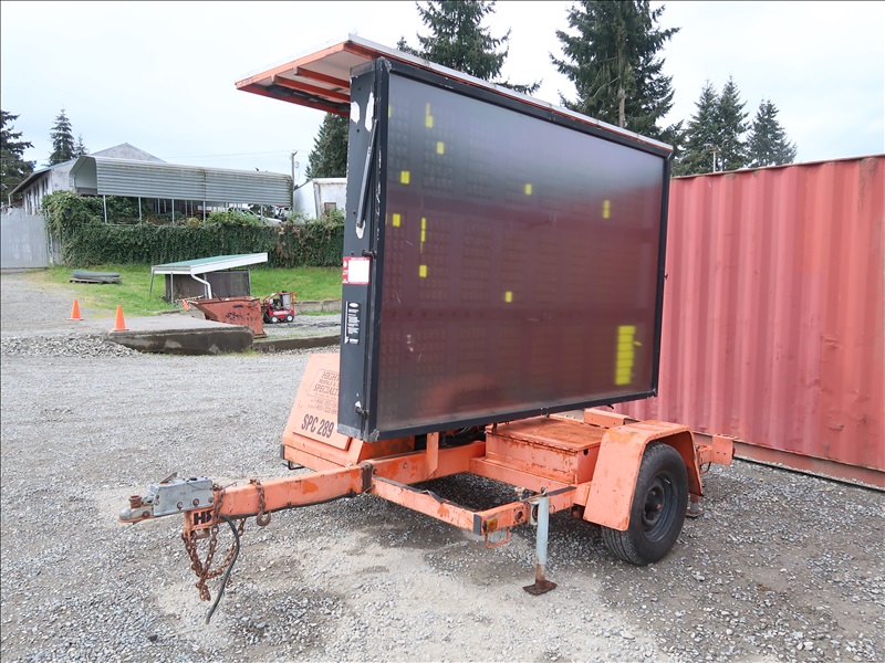 S/A TRAILER MOUNTED MESSAGE BOARD, SOLAR, SURGE BRAKES (NEEDS REPAIR, MISSING SOME BATTERIES, NON-WORKING)