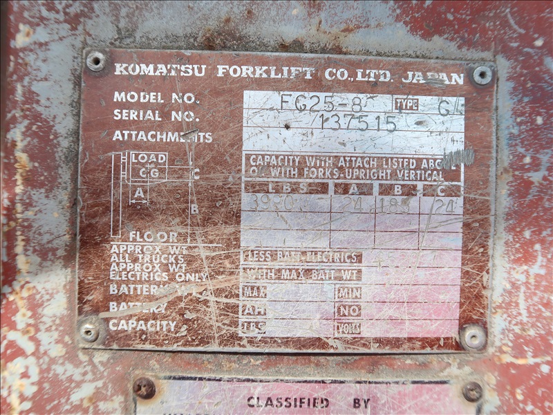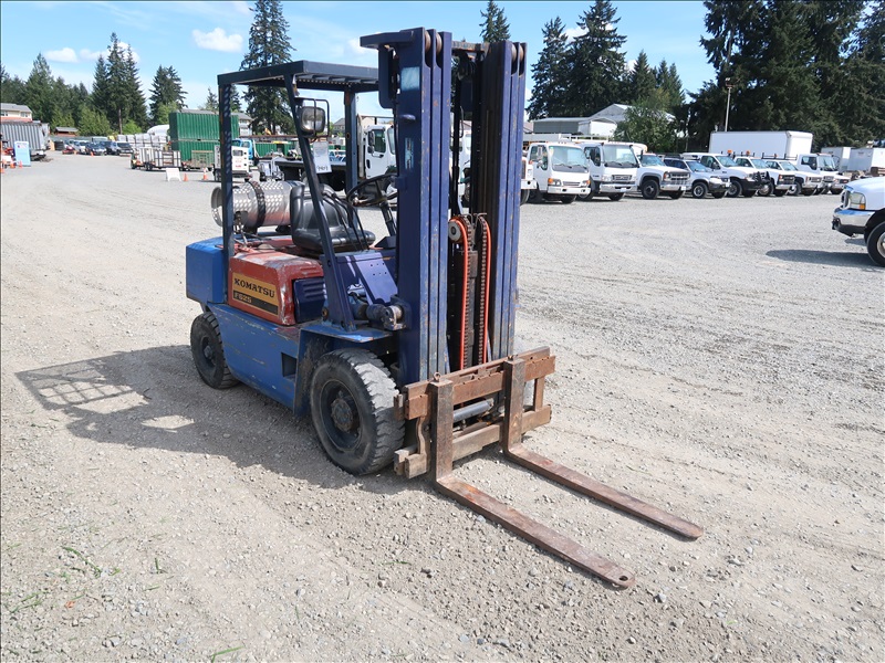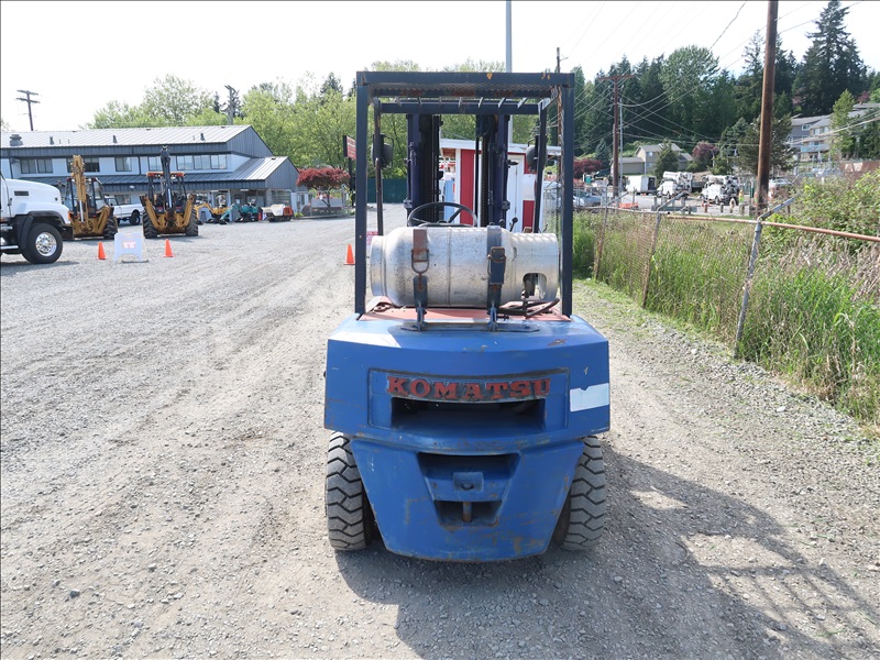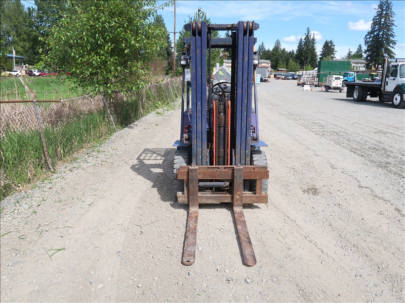 3,990 LB PNEUMATIC TIRE FORKLIFT, 187" FORK HEIGHT, 3-STAGE MAST, SIDE SHIFT, 4 CYL LPG