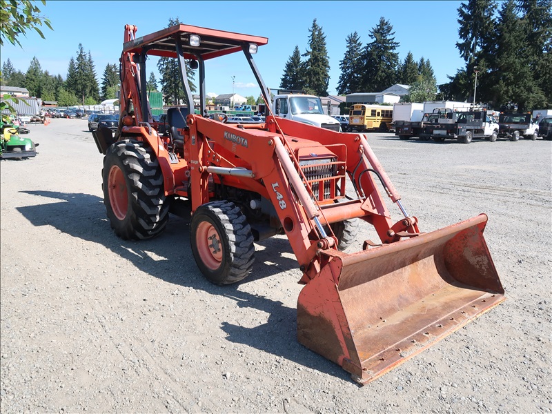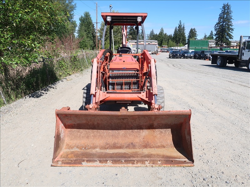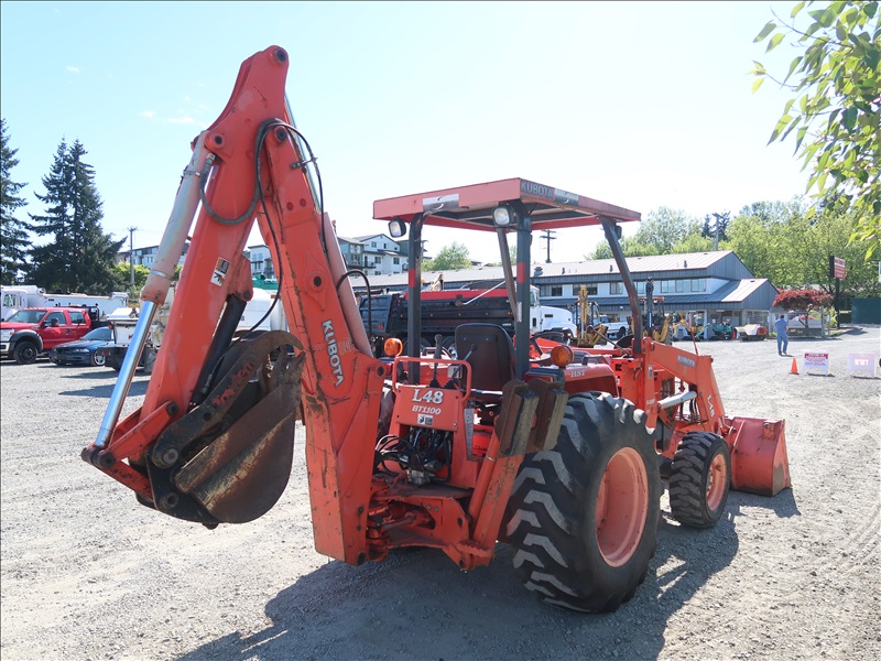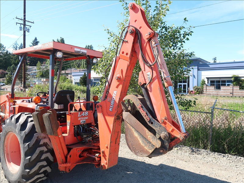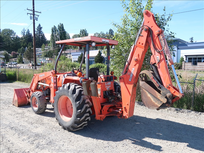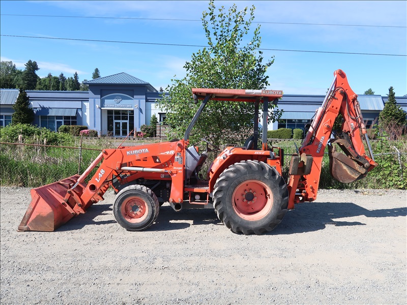 MFWD TRACTOR LOADER, BACKHOE, 48 HP E-TVS 4 CYL DIESEL, 3 RANGE HYDROSTATIC, HYD THUMB, 12" BUCKET, CANOPY (NO REVERSE)