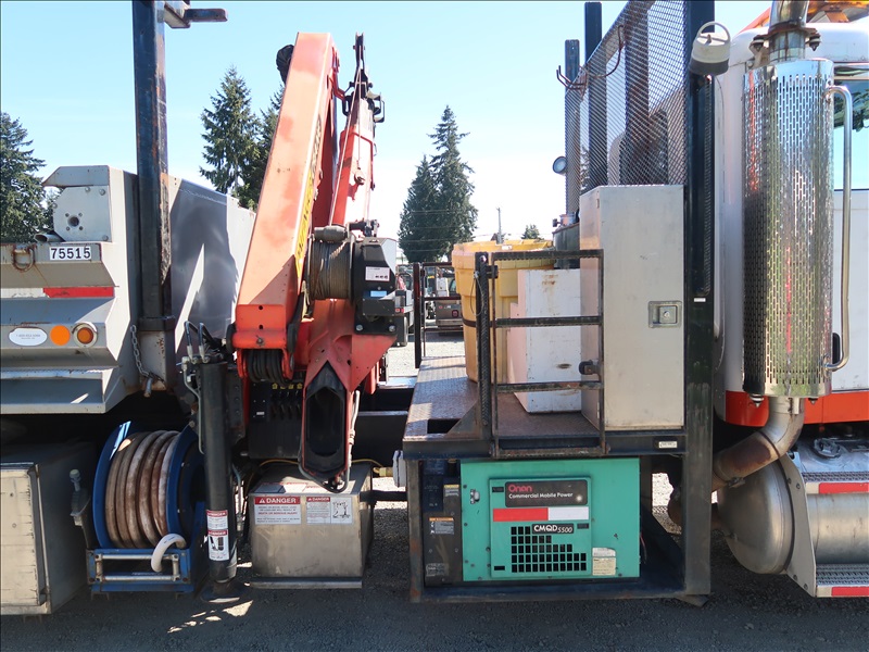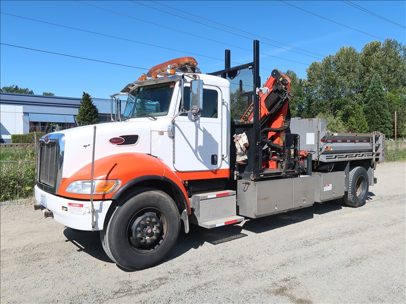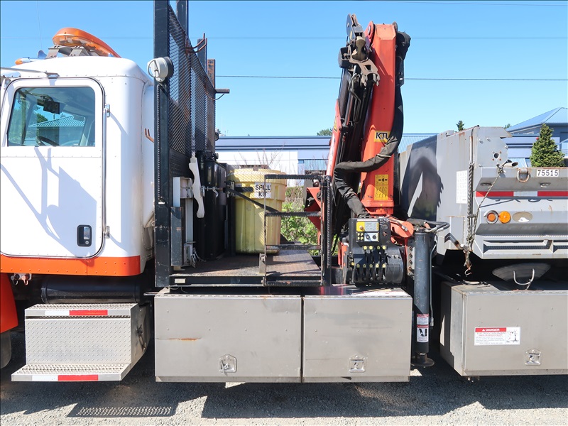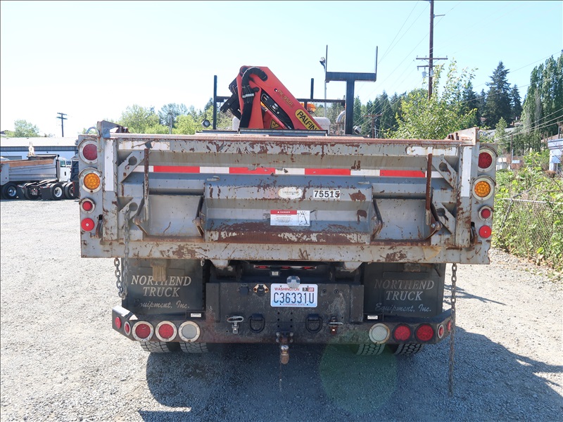 DUMP TRUCK, 10' STEEL BOX, CAT C7, AUTO, PALFINGER PK9501 KNUCKLE BOOM, W/HETRONIC REMOTE CONTROL, OUTRIGGERS, ONAN CMQD 5500 GENERATOR