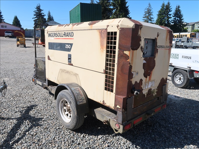 S/A, 1997 INTERSOLL RAND, CFM TRAILER MOUNTED AIR COMPRESSOR, JOHN DEERE, 4045D-80 4 CYL DIESEL, E/B, 205/75R15