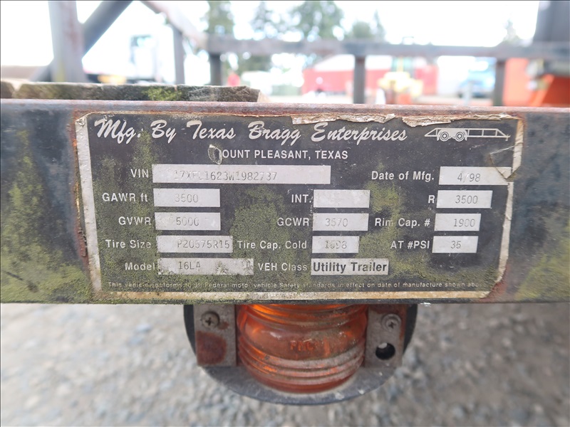 T/A, 16' 3,500 LB GVWR UTILITY TRAILER, 205/75R15 (**TITLE BRANDED SALVAGE/DAMAGED**)