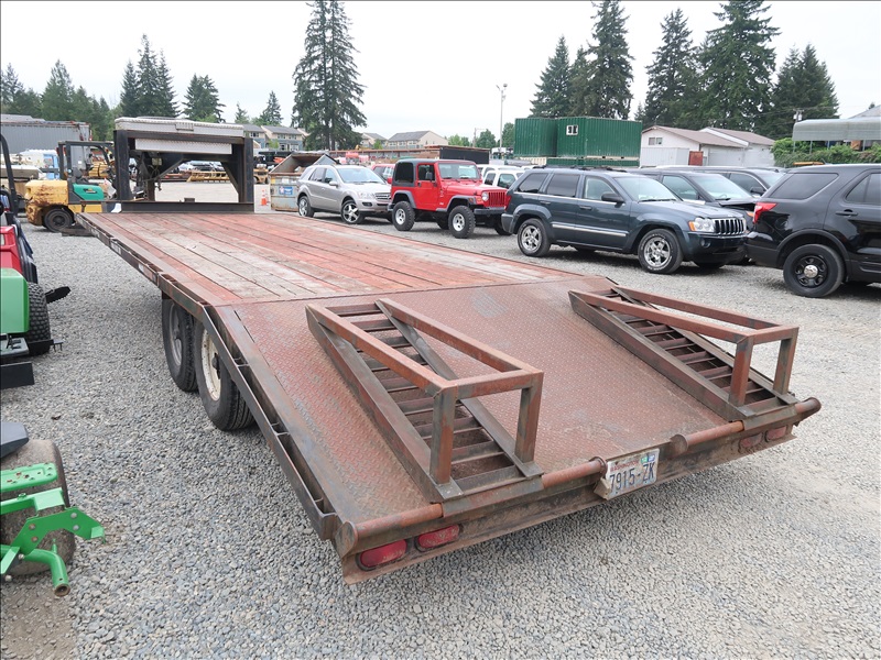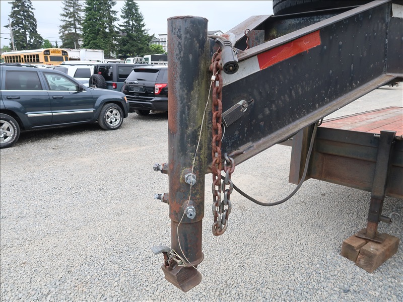 T/A 23' GOOSENECK EQUIPMENT TRAILER, 18' DECK + 5' BEAVERTAIL W/RAMPS, E/B, 235/85R16