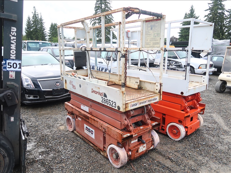 15', 600 LB, SCISSOR LIFT ( NON WORKING MISSING BATTERIES, PLEASE PREVIEW )