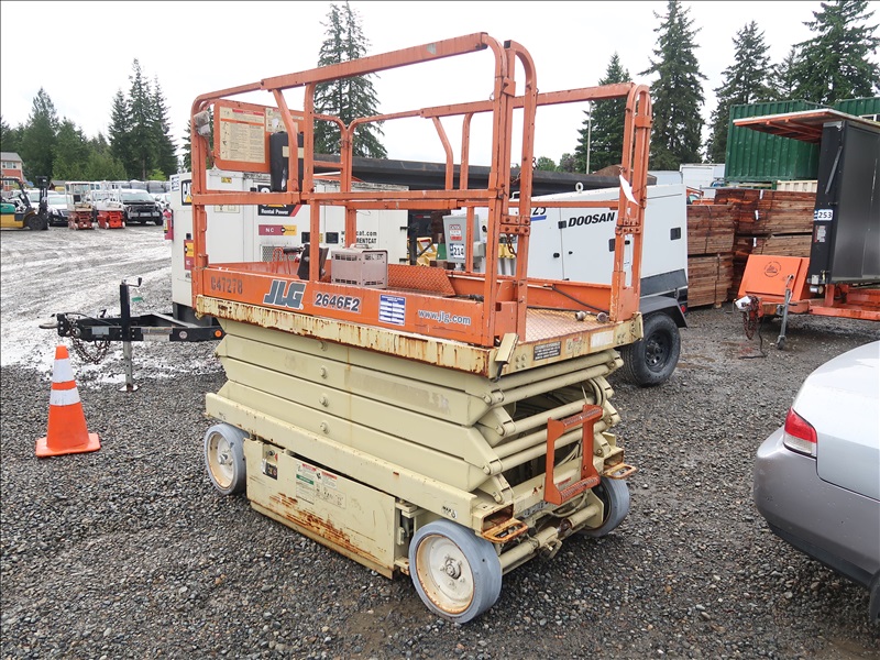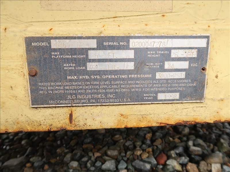 26', 750 LB SCISSOR LIFT, 24V ( NO KEY, NON WORKING NEEDS REPAIR PLEASE PREVIEW )