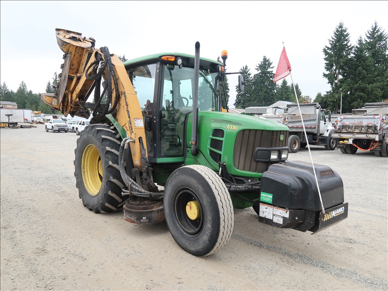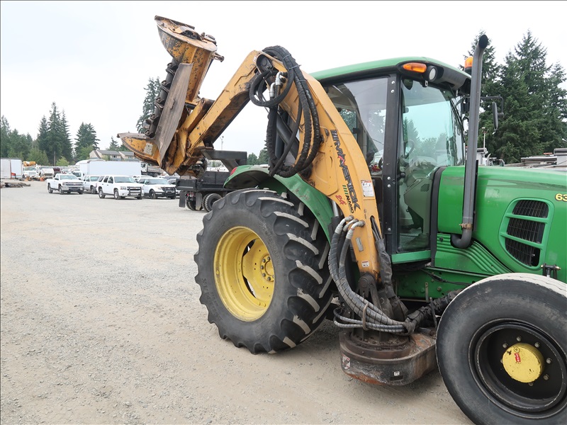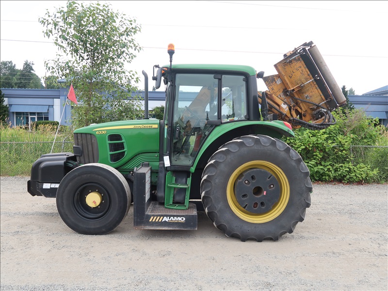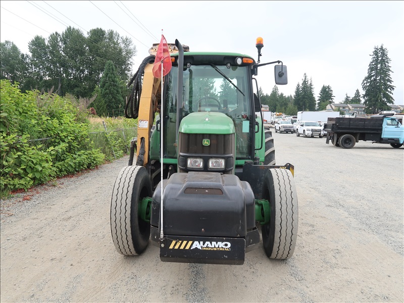 MFWD TRACTOR, 105 HP 4045HL281 POWER TECH, POWER QUAD PARTIAL POWER SHIFT, 24F/24R, REMOTE, ELECTRONICS, PTO, 3 POINT DRAW BAR, A/C CAB, ALAMO MV24 SIDE BOOM MOWER, 56" FLAIL MOWER