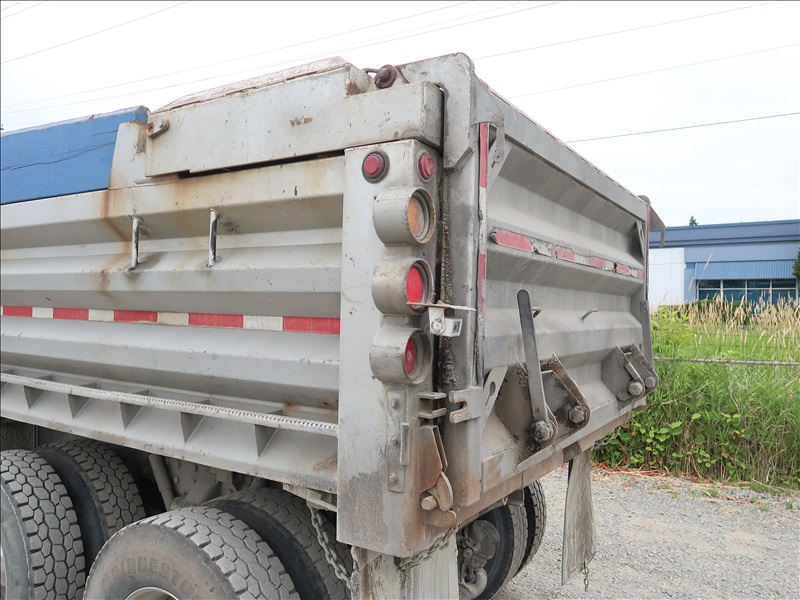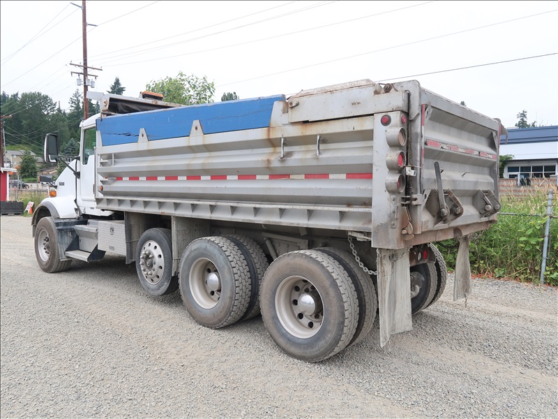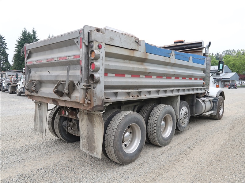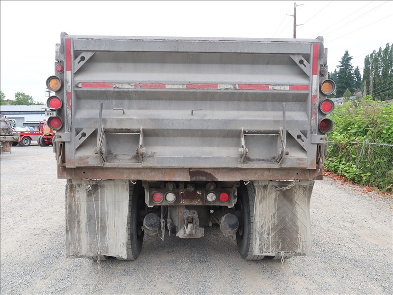 TRI/A DUMP TRUCK, 16' STEEL BOX, HIGH LIFTGATE, TARP SYSTEM, CHALMERS SUSPENSION, 211" W/B, 20,000 LB FRONT, 46,000 LB REARS, DROP AXLE, PLUMBED FOR PUP