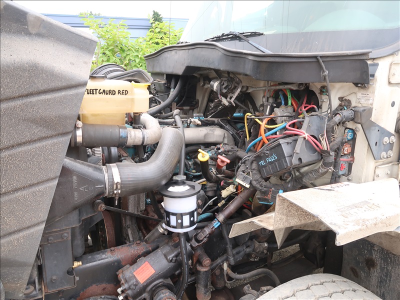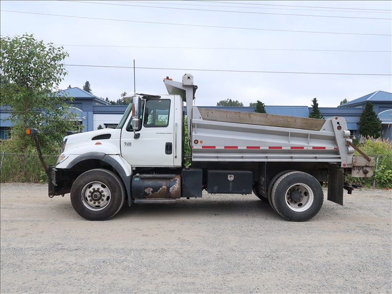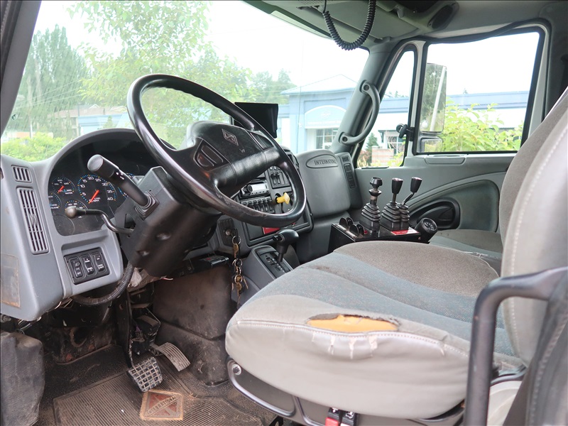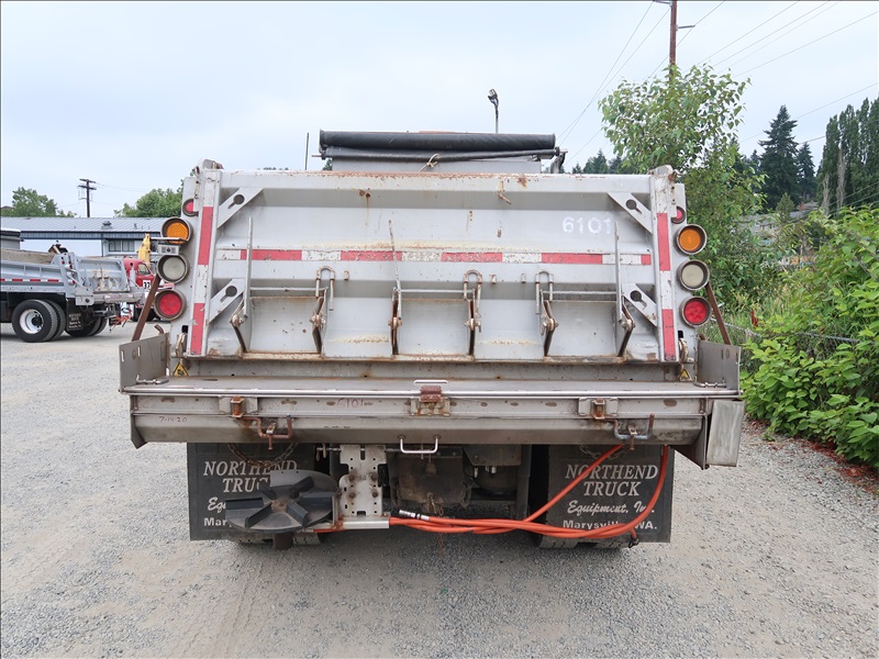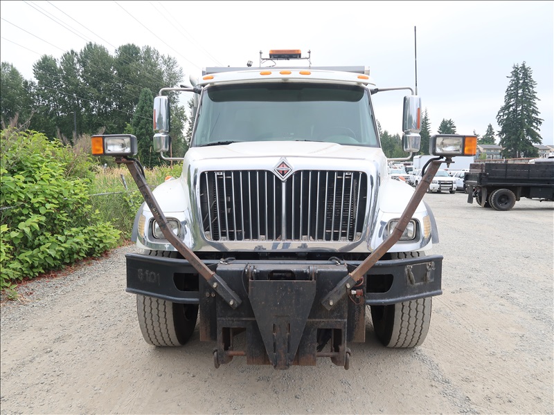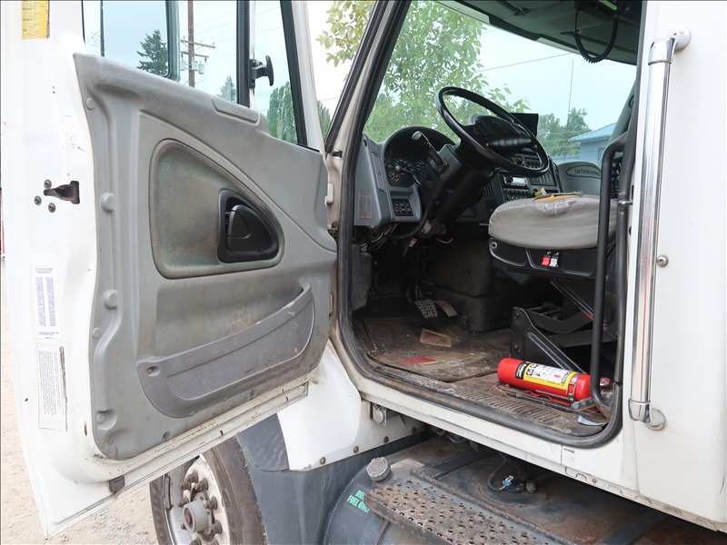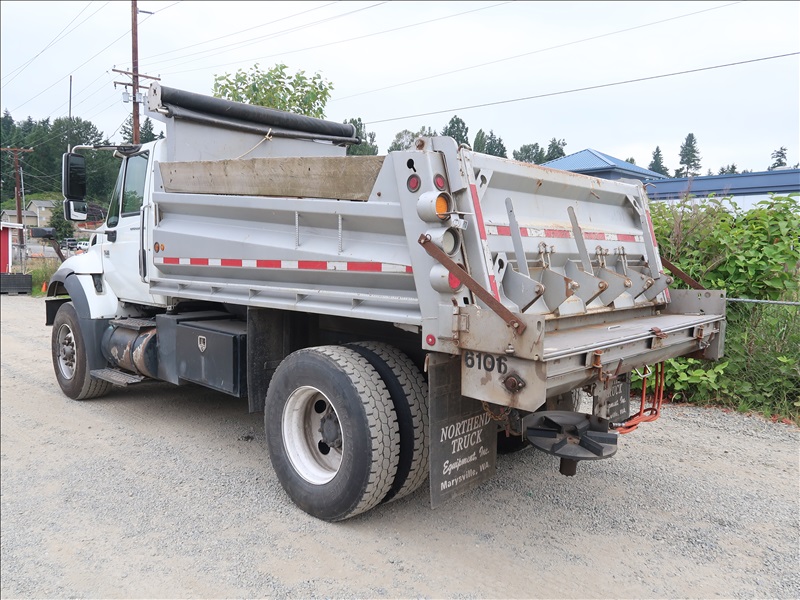 DUMP TRUCK, 11' STEEL BOX, TARP SYSTEM, SANDER, ASPHALT GATES, DT570, AUTO, AIR SUSPENSION, 163" W/B, 18,000 LB FRONT, 23,000 LB REARS, FRONT PLOW READY (CONSIGNOR DISCLOSURE: COOLANT IN OIL)