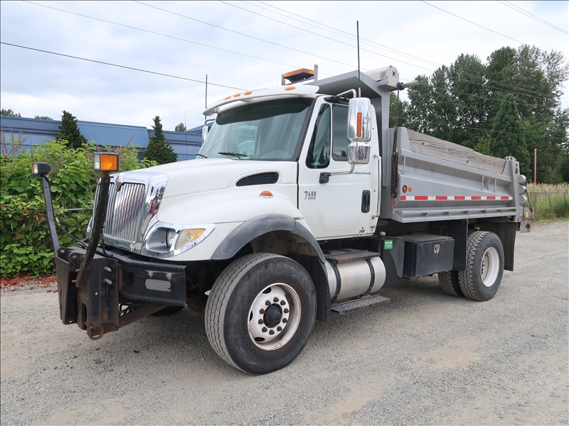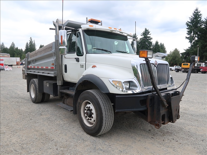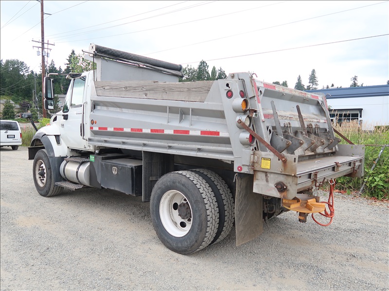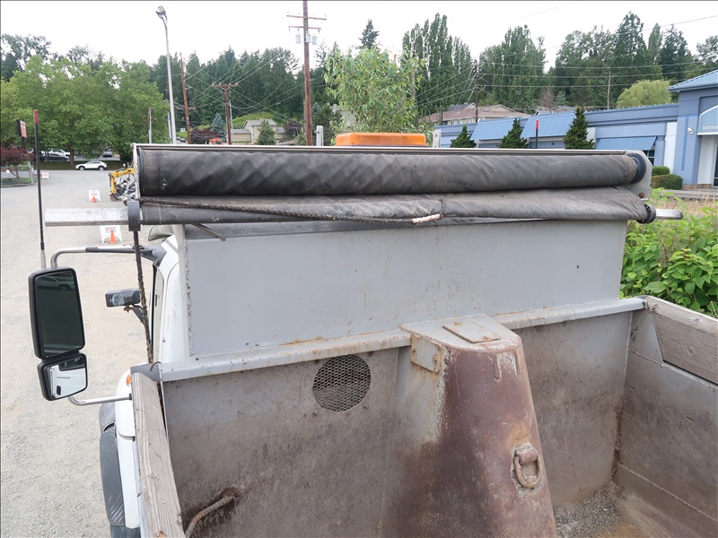 DUMP TRUCK, 11' STEEL BOX, TARP SYSTEM, SANDER, ASPHALT GATES, DT570, AUTO, 163" W/B, 18,000 LB FRONT, 23,000 LB REARS, FRONT PLOW READY