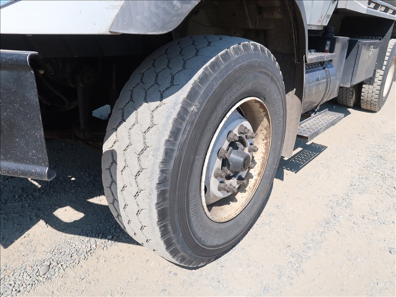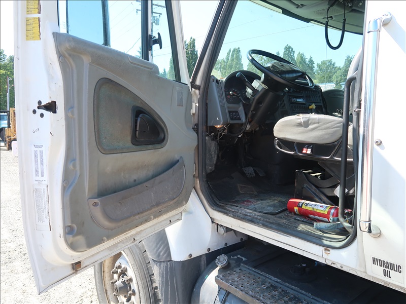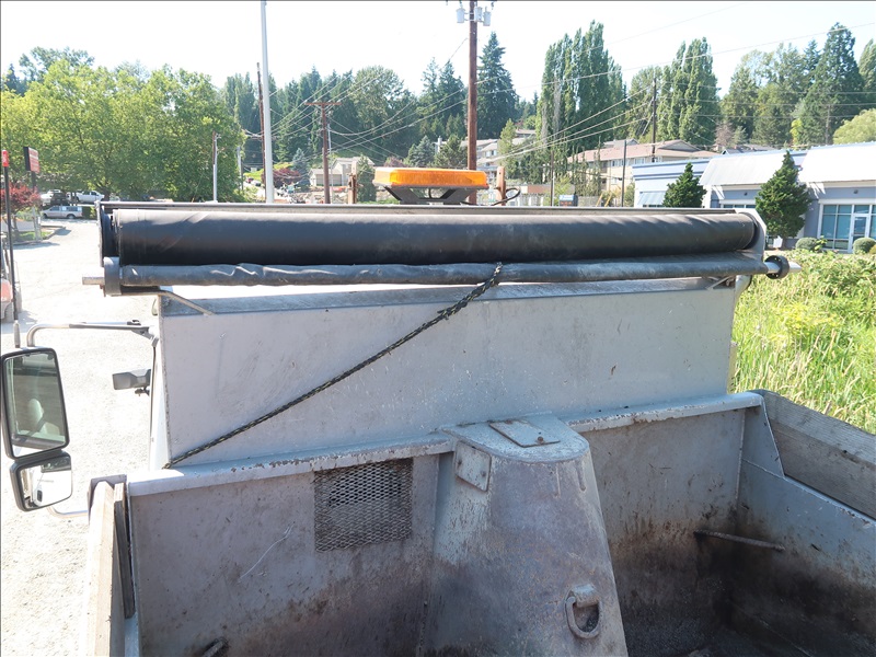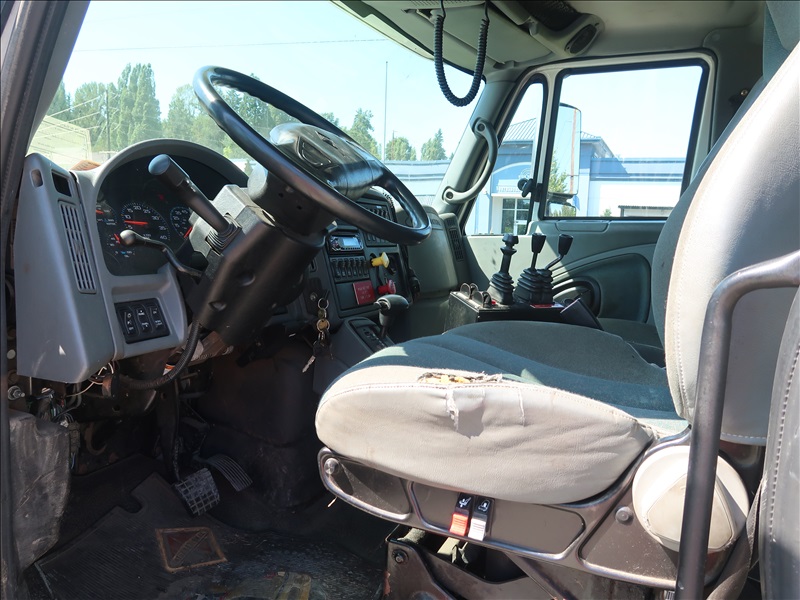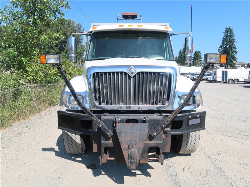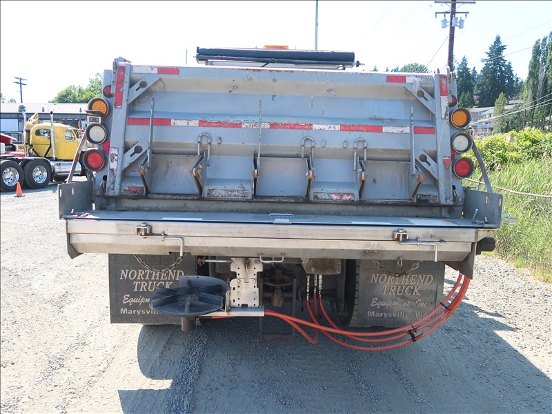 DUMP TRUCK, 11' STEEL BOX, TARP SYSTEM, SANDER, ASPHALT GATES, DT570, AUTO, AIR SUSPENSION, 163" W/B, 18,000 LB FRONT, 23,000 LB REARS, FRONT PLOW READY