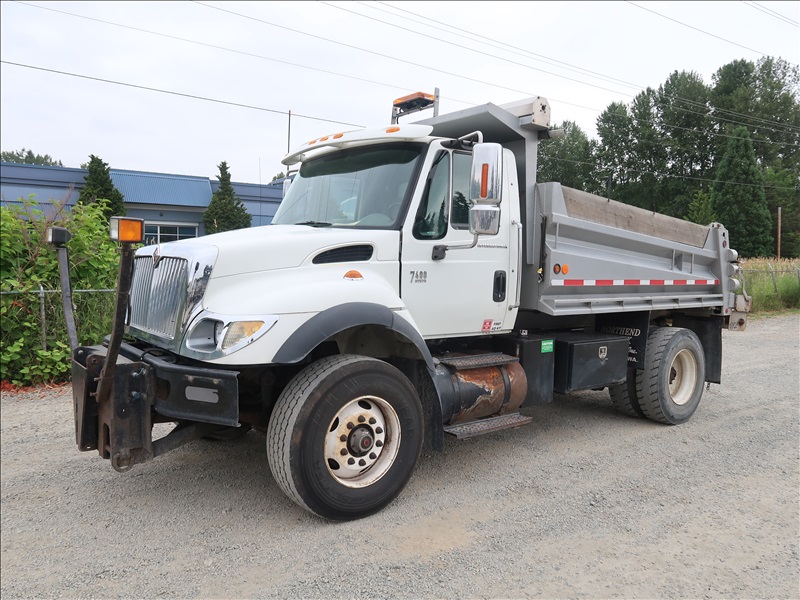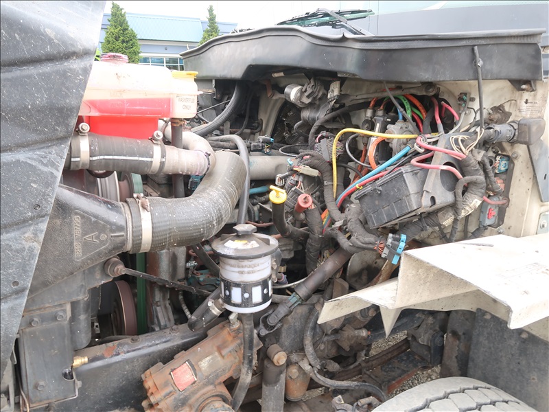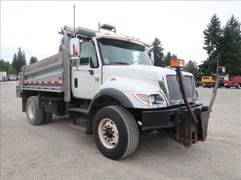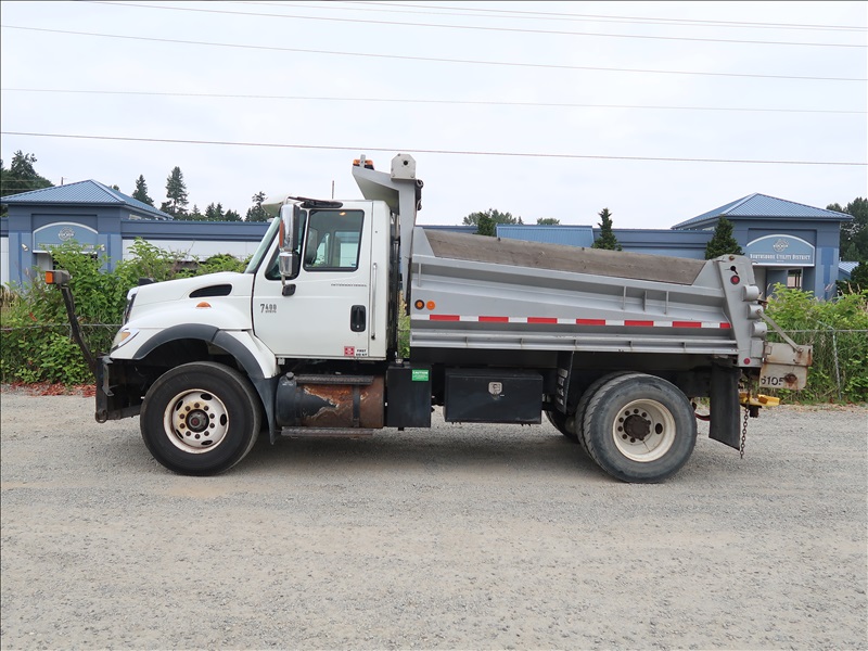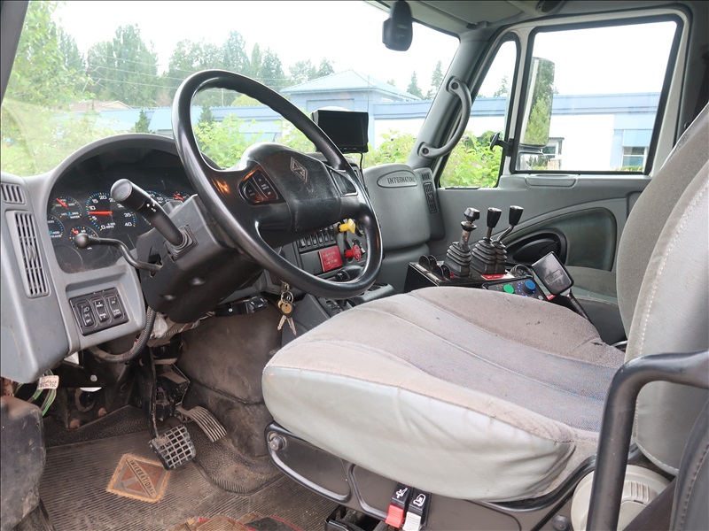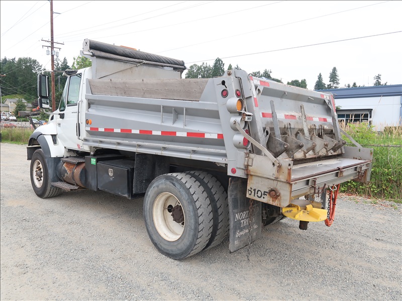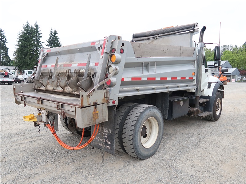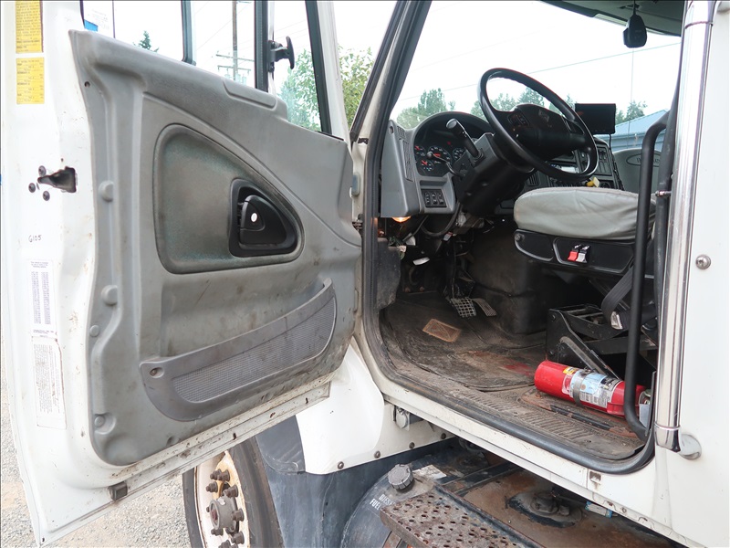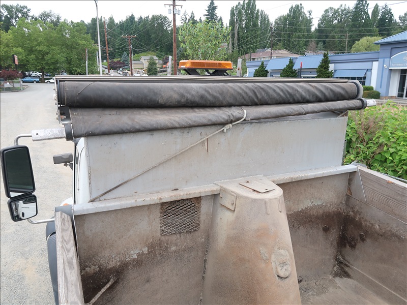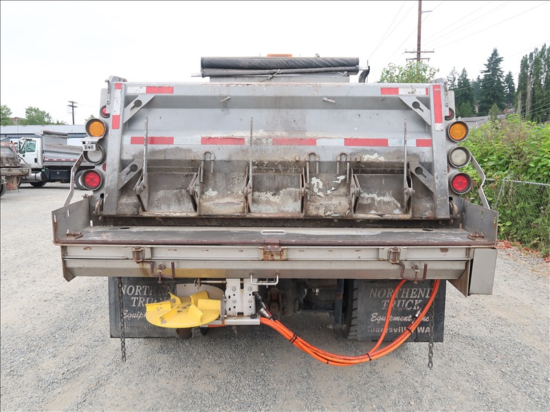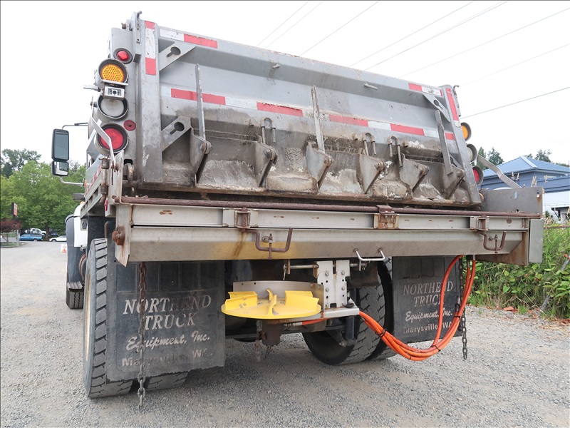 DUMP TRUCK, 11' STEEL BOX, TARP SYSTEM, SANDER, ASPHALT GATES, DT570, AUTO, AIR SUSPENSION, 163" W/B, 18,000 LB FRONT, 23,000 LB REARS, FRONT PLOW READY