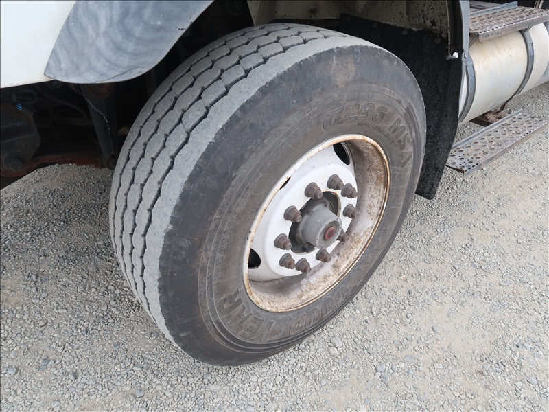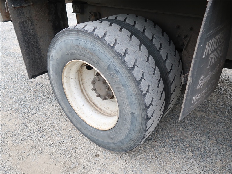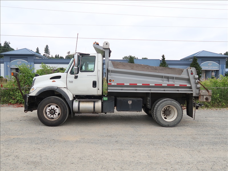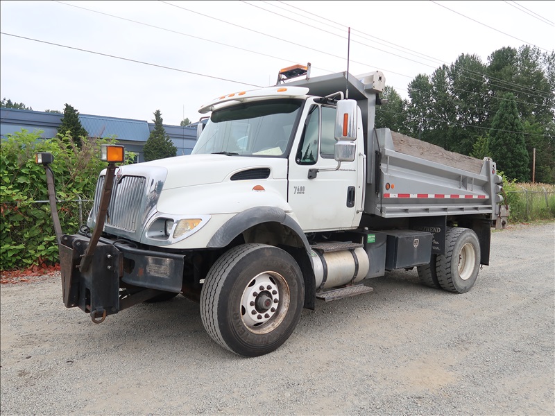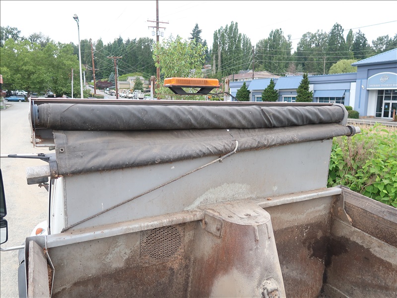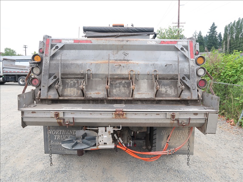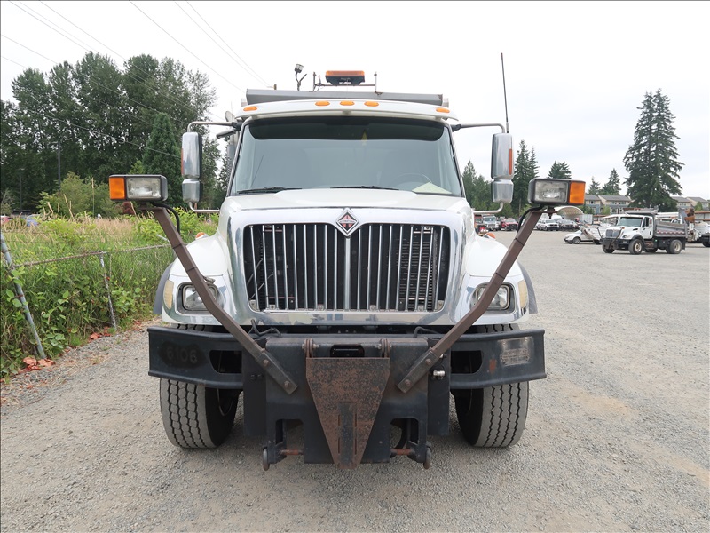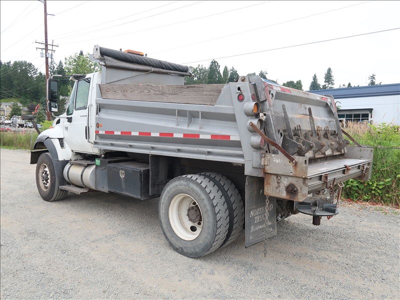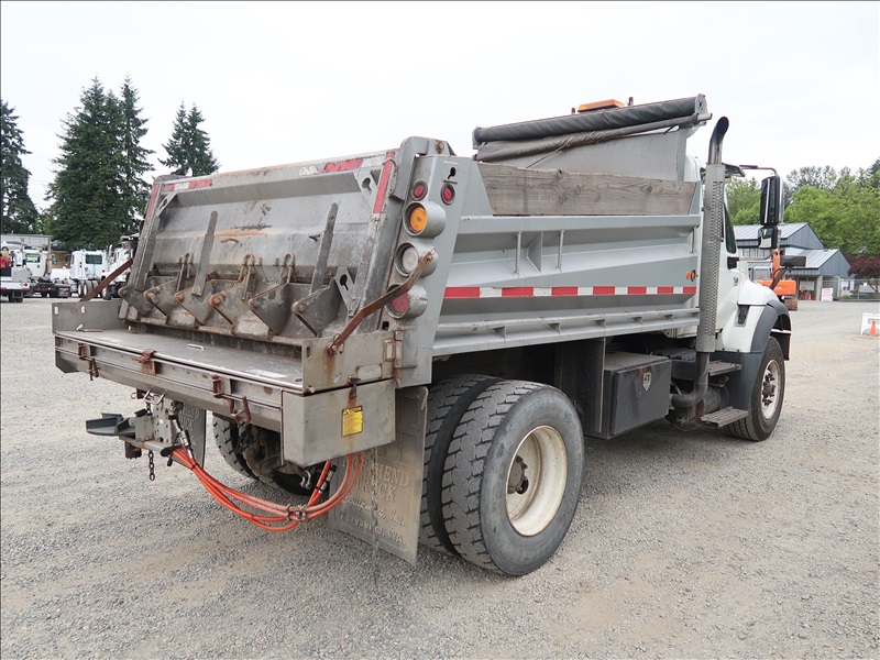 DUMP TRUCK, 11' STEEL BOX, TARP SYSTEM, SANDER, ASPHALT GATES, DT570, AUTO, AIR SUSPENSION, 163" W/B, 18,000 LB FRONT, 23,000 LB REARS, FRONT PLOW READY