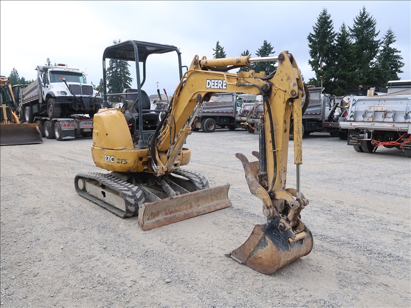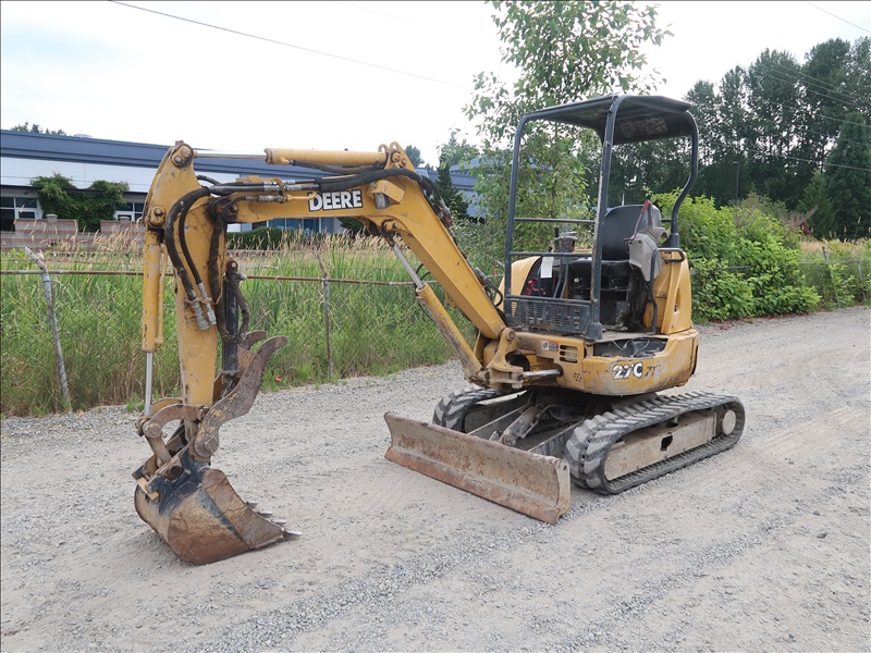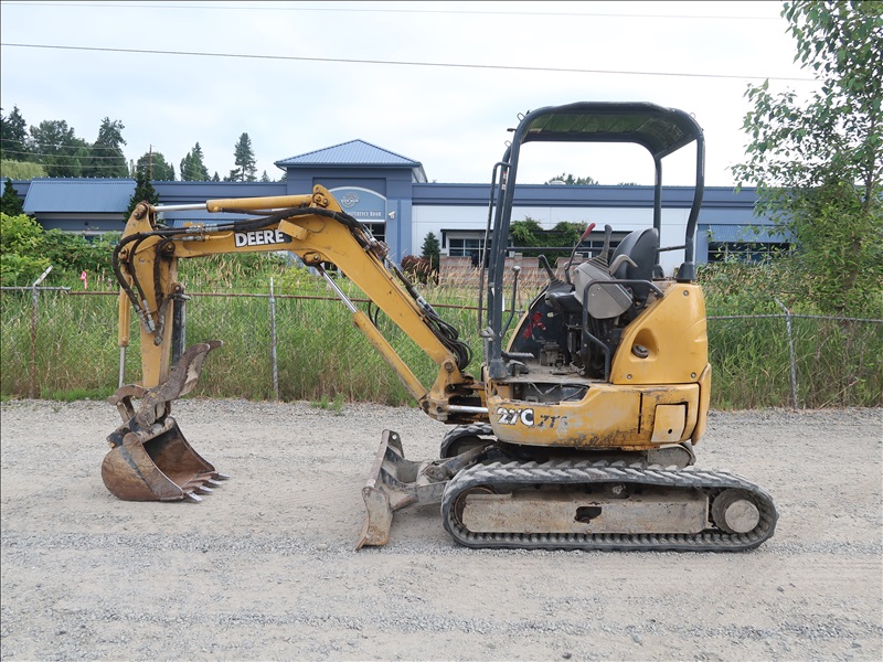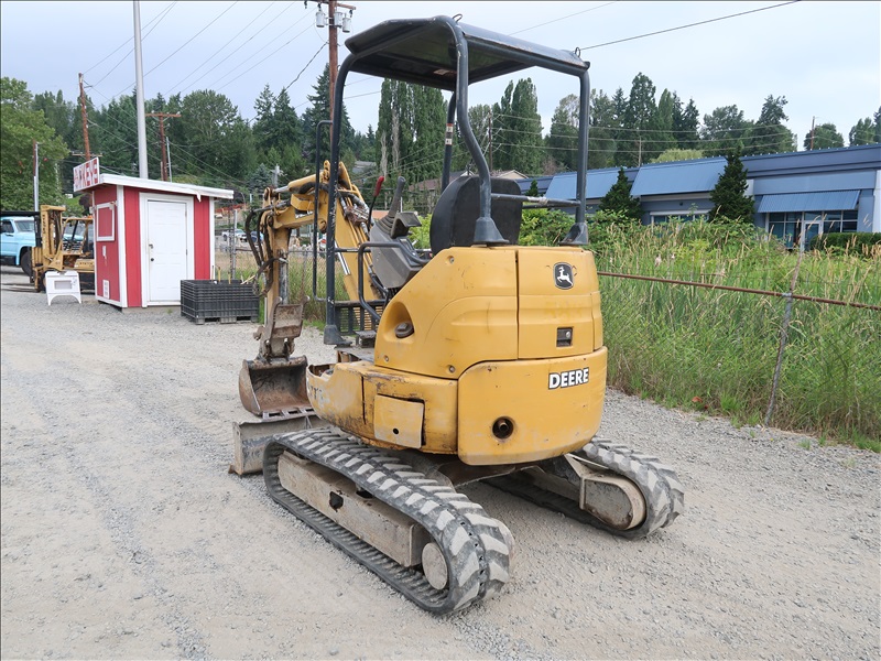 MINI EXCAVATOR, ISUZU 3 CYL DIESEL, SWING BOOM, HYD THUMB, AUX HYD, QC 23" BUCKET, BLADE, RUBBER TRACKS, CANOPY (WILL NOT TRAVEL, LEFT DRIVE MOTOR LOCKED UP)