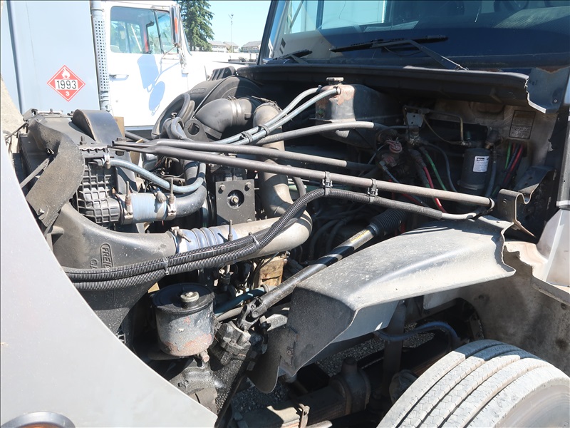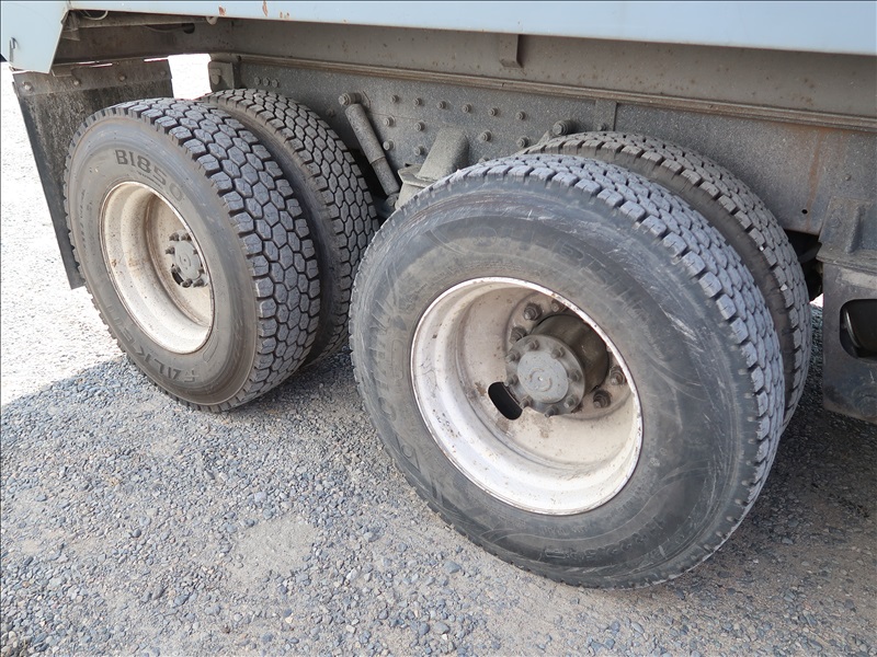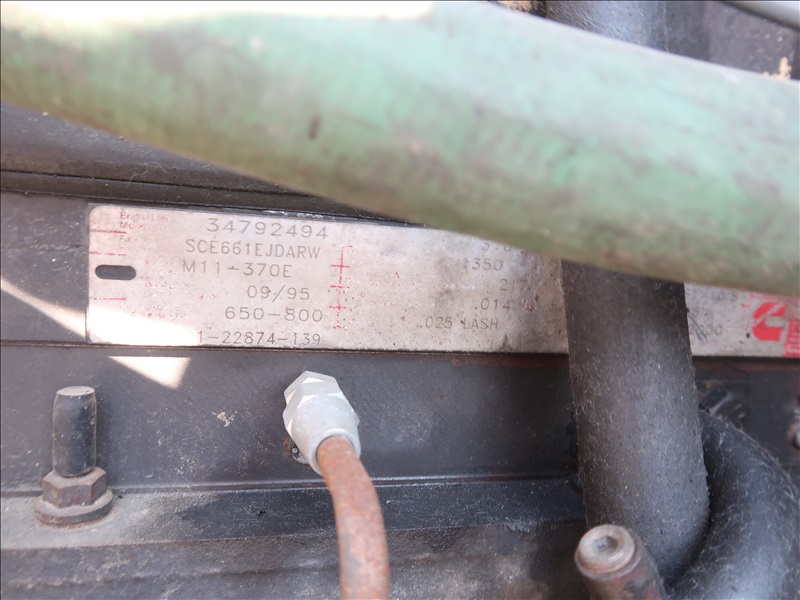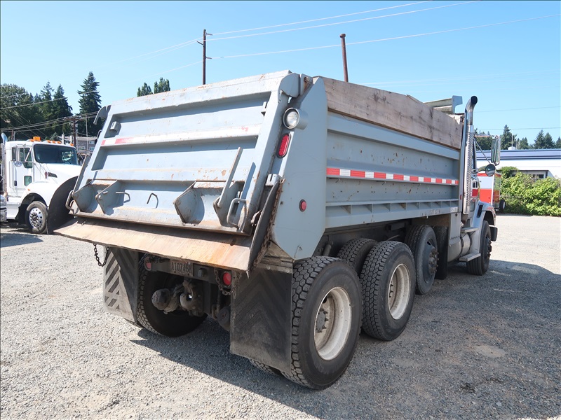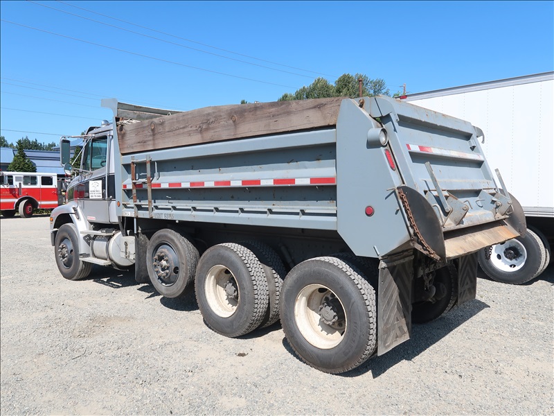TRI/A DUMP TRUCK, 16' STEEL BOX, ASPHALT GATES, 370 HP CUMMINS M11, AUTO, 205" W/B, 18,000 LB FRONT, 40,000 LB REARS, DROP AXLE, PLUMBED FOR PUP