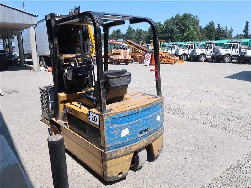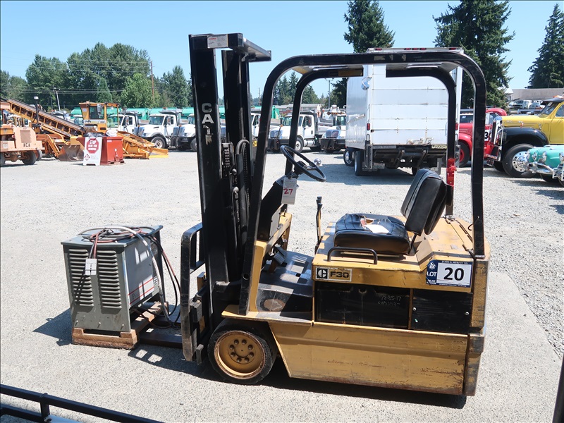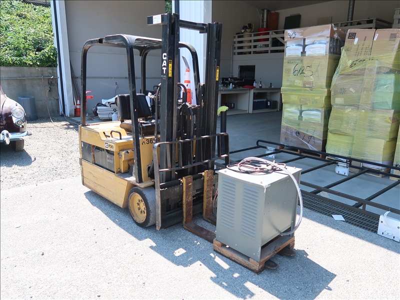 3,000 LB HRT FORKLIFT, 129" FORK HEIGHT, 2-STAGE MAST, SIDE SHIFT, 36V ELECTRIC W/PRECISION CHARGER (BRAKES NEED REPAIR)