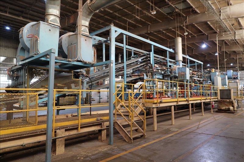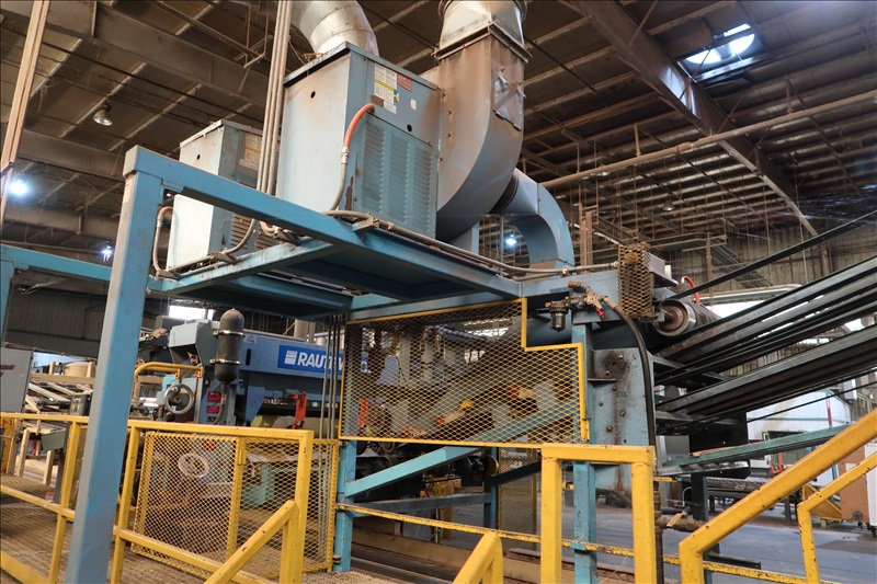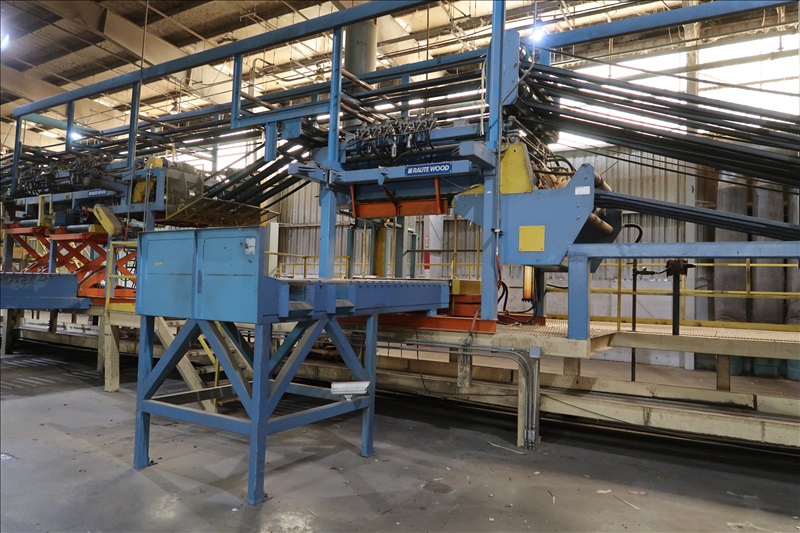 4-BIN GREEN VENEER STACKER W/FEED THRU VACUUM BELT W/(4) SERIES 20 GI FANS, (1) 60"X45" & (3) 60"X75" SCISSOR LIFTS TO 60"X110" OUTFEED GRAVITY ROLLS, SHEET DIVERTER W/(2) SERIES 20 GI FANS & INFEED BELTS