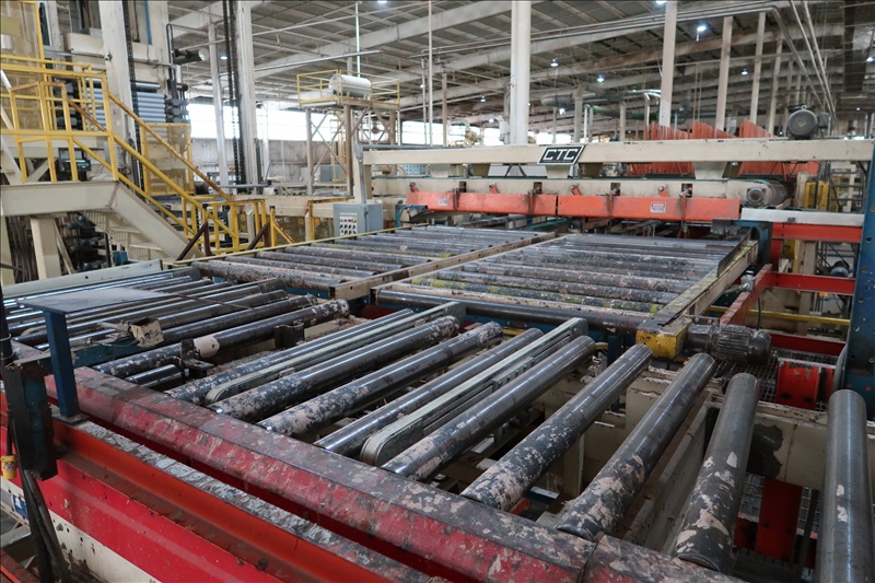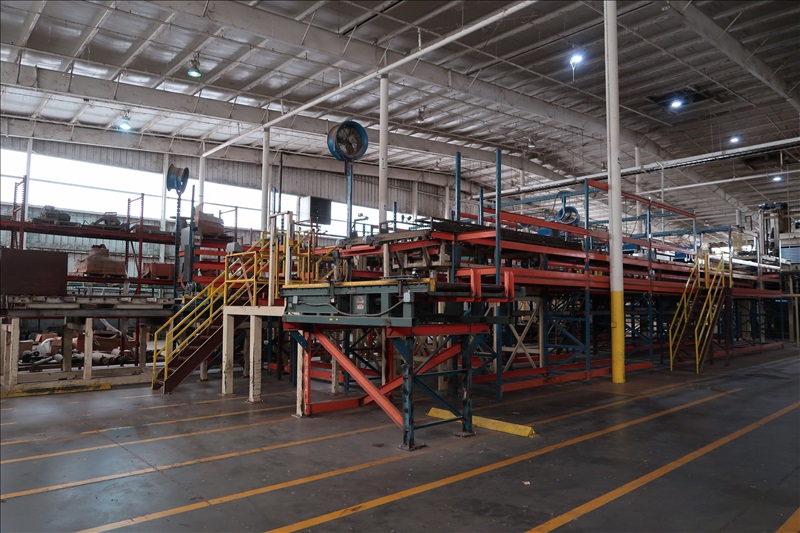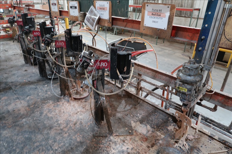W/CTC BELT FEEDER (FROM PRESS) TO (6) 55"X10' POWERED ROLLCASES W/BELTS, CORNER BELT TRANSFER W/(4) PATERSON FANS TO (6) APPROX 55-1/2"X10' POWERED ROLLCASES W/(2) CORNER UNITS TO (2) 55"X10' POWERED ROLLCASES (TO DRYING RACK), (4) AERO PUMPS, CENTRIC PNEUMATIC BUCKET PUMP, GRACO C36-2000 CHECK MATE PNEUMATIC PUMP, (24) ALLEN BRADLEY PF-4, 2 HP VFD'S