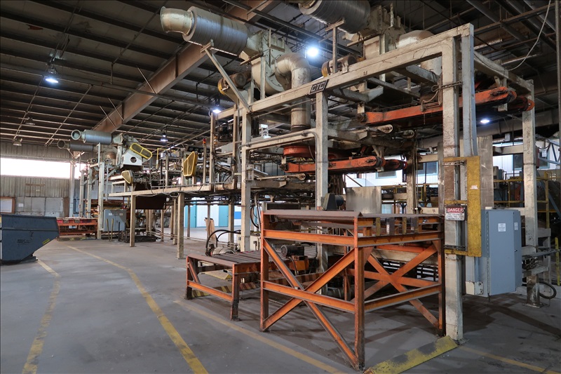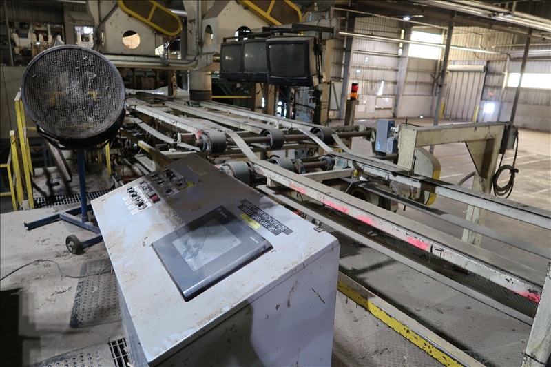 VENEER MATCHING LINE W/DUAL VACUUM UNLOADERS W/50"X84" ROLL TOP SCISSOR LIFTS, POWERED INFEED ROLLCASES, VACUUM BELTS W/APPROX 30 HP FANS, 60 HP HYDRAULIC UNIT, (2) 10'X4" 2-STRAND INFEED BELT TRANSFER TO VENTEK SEQUOIA II VENEER MOISTURE DETECTOR W/16'X4" 2-STRAND FEED THRU BELT TRANSFER TO 2-1/2' X 3-ARM REJECT TIPPLE TO 63"X7' CANTED EVEN END ROLLCASE TO DUAL VACUUM STACKERS W/SINGLE VACUUM BELT W/(2) 25 HP FANS W/ABB 25 HP VFD'S, (2) 60"X72" HYDRAULIC OPERATED SCISSOR LIFTS W/POWER TOP ROLLS TO OUTFEED GRAVITY ROLLS, ALLEN BRADLEY 5000 SERIES PLC W/CONTROL NET & (3) DC INFEED & (3) DC OUTFEED MODULES, (2) ALLEN BRADLEY 5 HP & (3) 3 HP POWER FACTOR VFD'S (MISSING PLC'S)