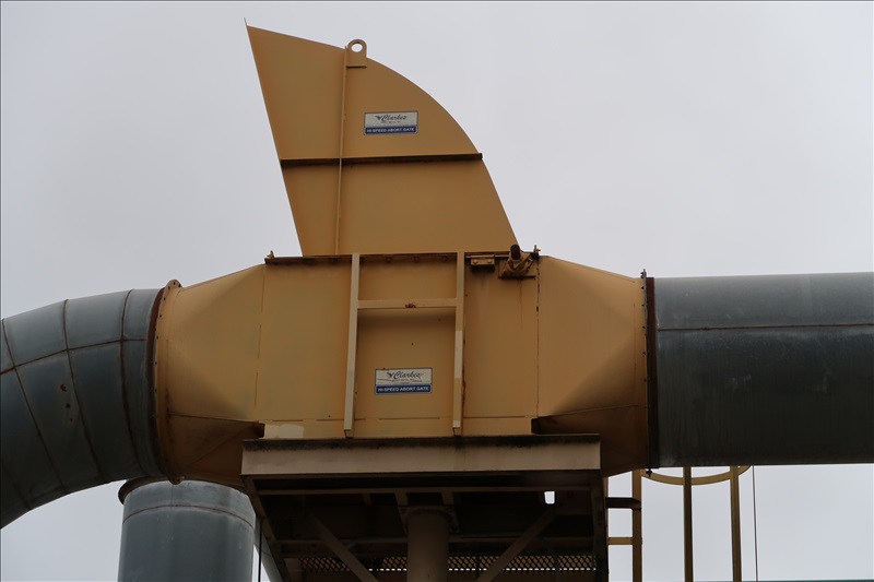 CONTINUOUS REVERSE AIR CLEANING SYSTEM, 6,163 SQ FT CLOTH W/AIR TO CLOTH RATIO OF 6.65:1 = 41,000 SCFM, CAN VELOCITY 248 FPM, 25 HP DIRECT DRIVE ALUMINUM CLEANING HEAD, (425) 5"X12' CAGES, (11) ALUMINUM EXPLOSION VENTS, KOGER CW UPBLAST SIZE 41 FAN W/250 HP MOTOR, BENSHAW RBX-1-S-302A-15C STARTER, KOGER CWLP SIZE 31 FAN W/30 HP MOTOR, AMW APPROX 24" BLOWER W/40 HP MOTOR, KOGER & AMW ROTARY AIR LOCKS, CLARKES CM41 HIGH SPEED ABORT GATE, CLARKES CXC-1 SPARK DETECTION & EXTINGUISHING SYSTEM
