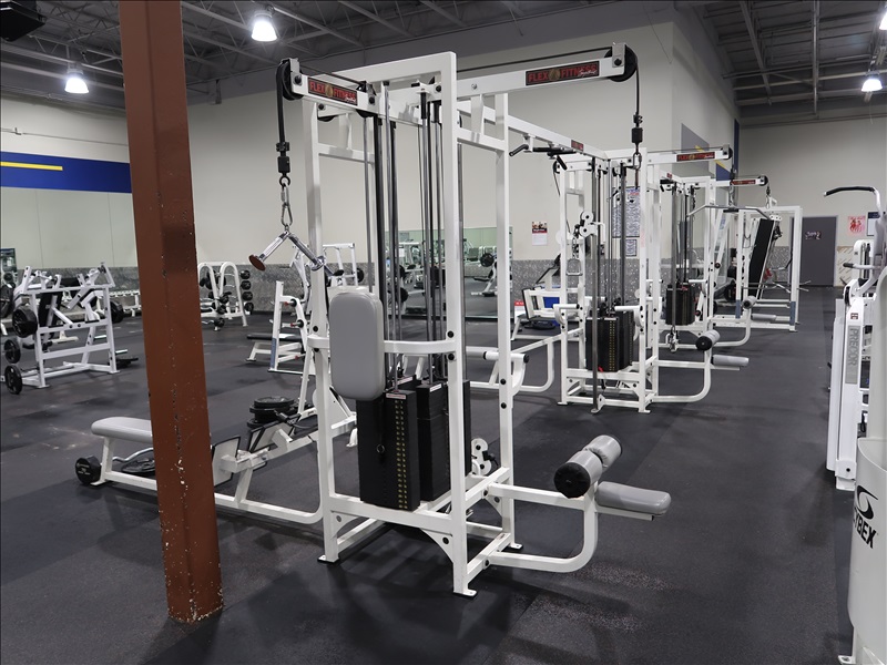 (3) 4-WORKOUT CABLE STATIONS, SEATED ROW SECTION, STANDING PULL DOWN SECTION, SEATED PULL DOWN SECTION, CURL MACHINE SECTION