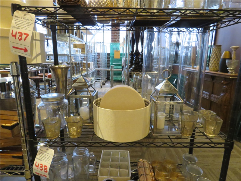 LOT, ASSORTED LINENS, VASES, CANDLE HOLDERS & DECOR ON THIS SHELF